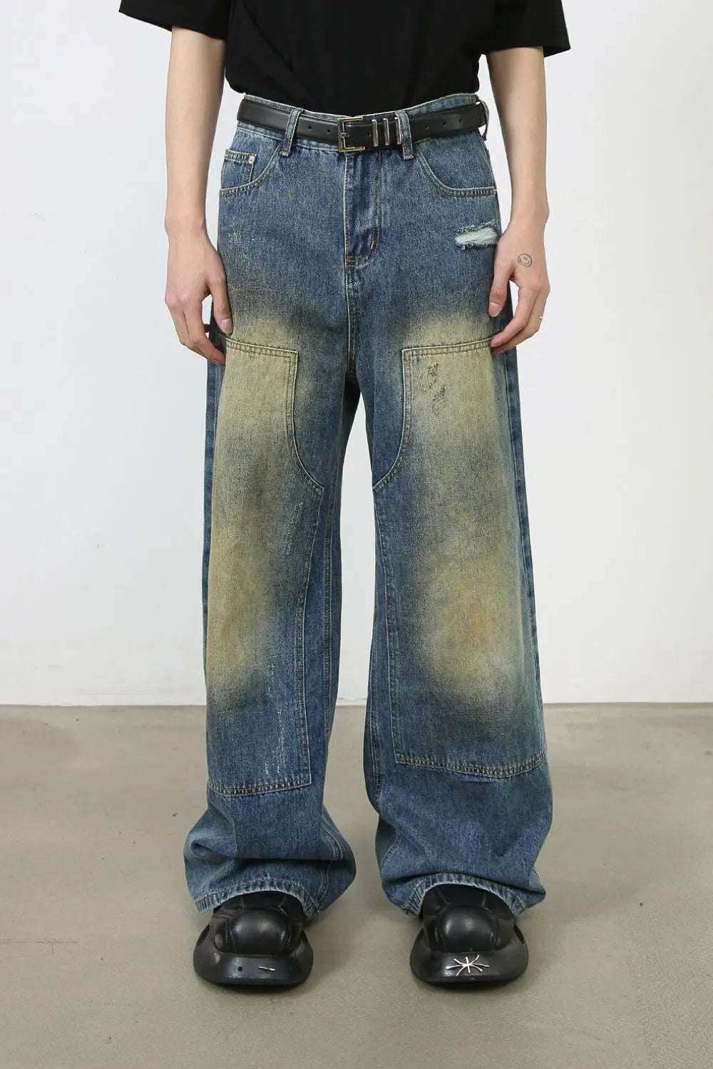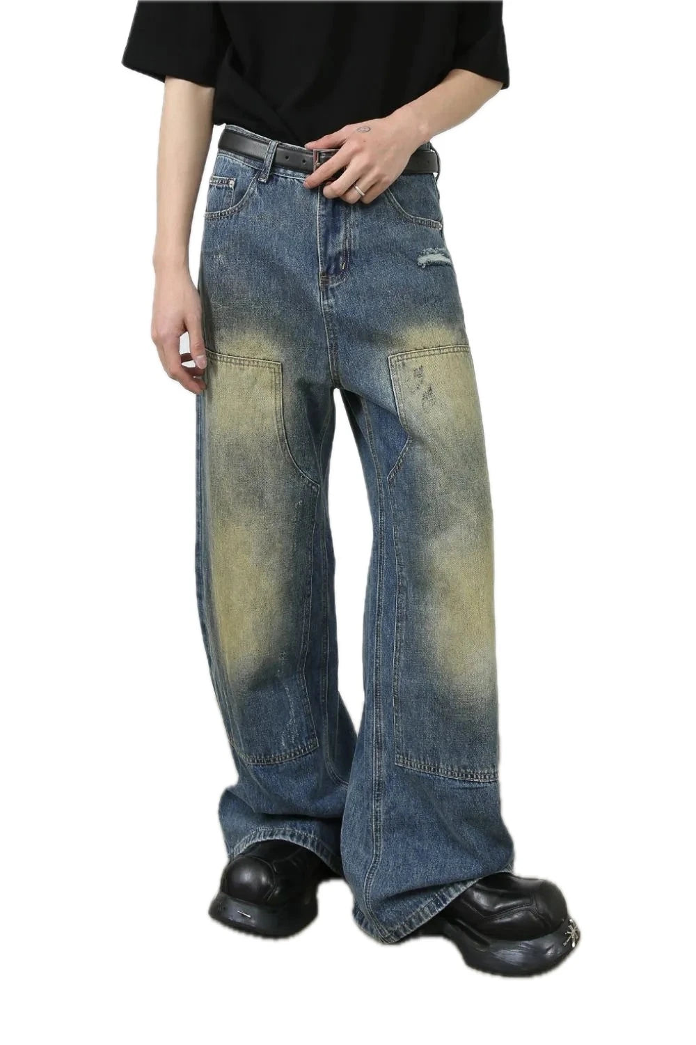 Mens Wide Leg Jeans Washed Denim Relaxed Fit Casual Trousers Everyday Wear Non Stretch Pocketed Design Durable