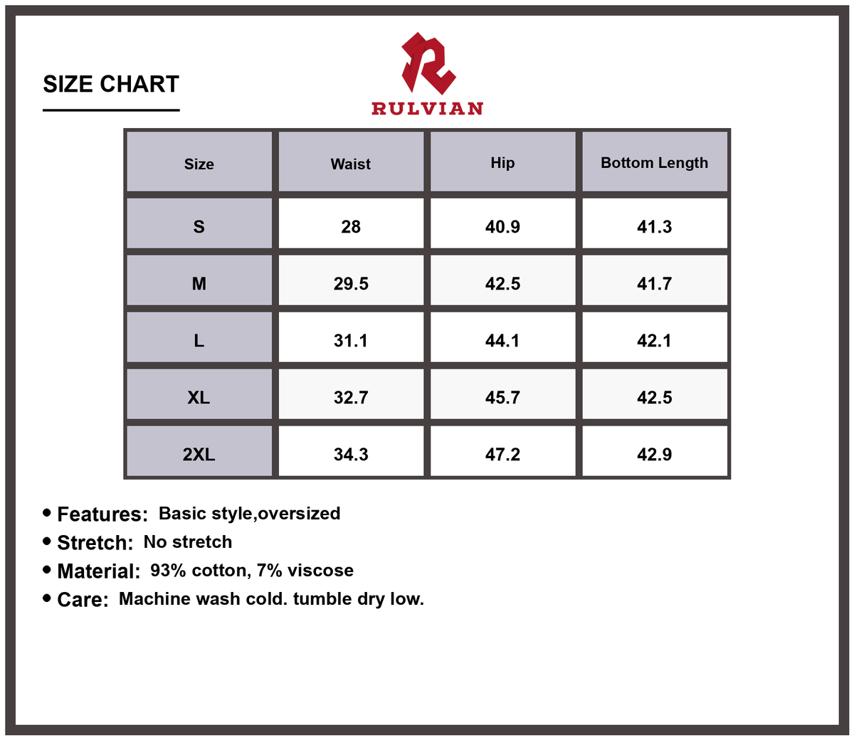 Size Waist Hip Bottom Length
