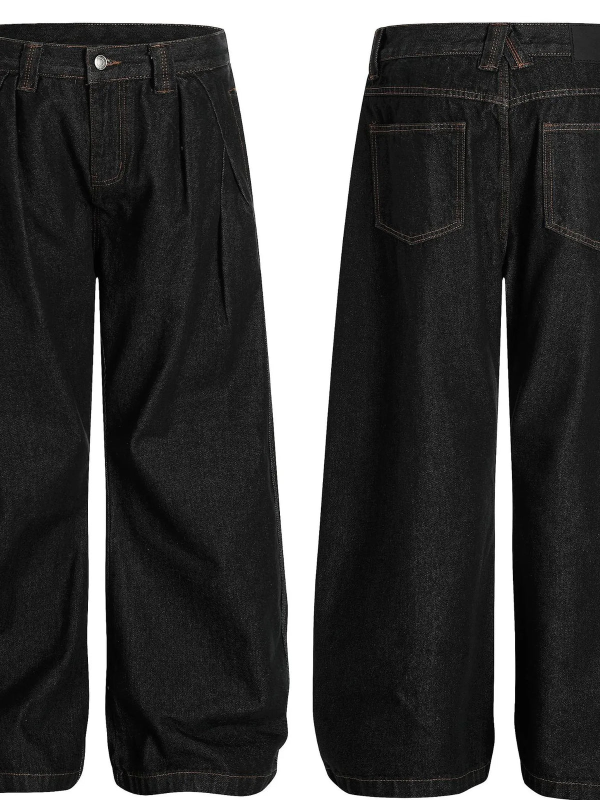 Mens wide leg baggy denim jeans oversized relaxed fit durable casual everyday streetwear apparel soft comfortable