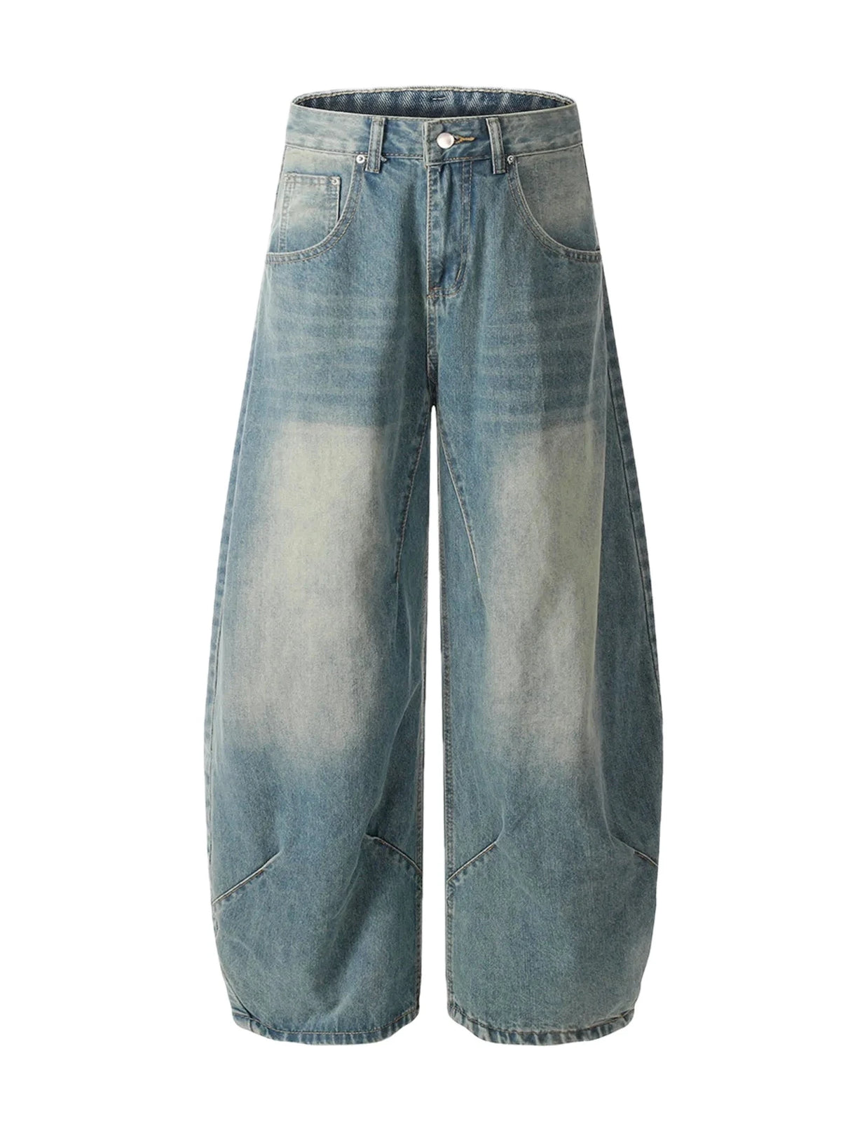 Mens Wide Leg Oversized Washed Denim Jeans Loose Fit Casual Pants For Everyday Wear Durable Comfort Slightly Stretchy
