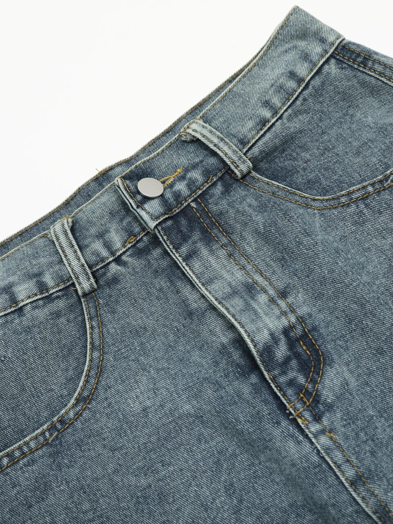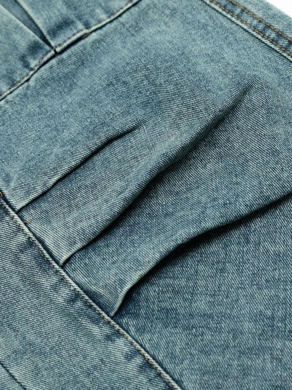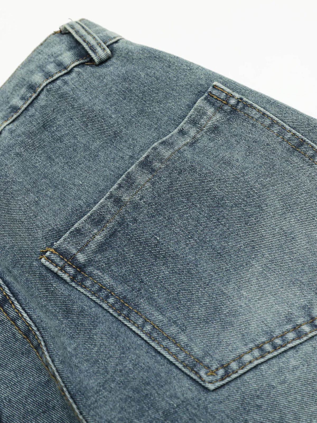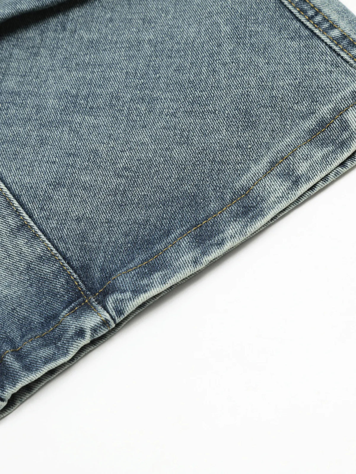 Men Wide Leg Cargo Jeans with Pockets Washed Durable Slightly Stretchy Everyday Outdoor Pants Versatile Casual Wear