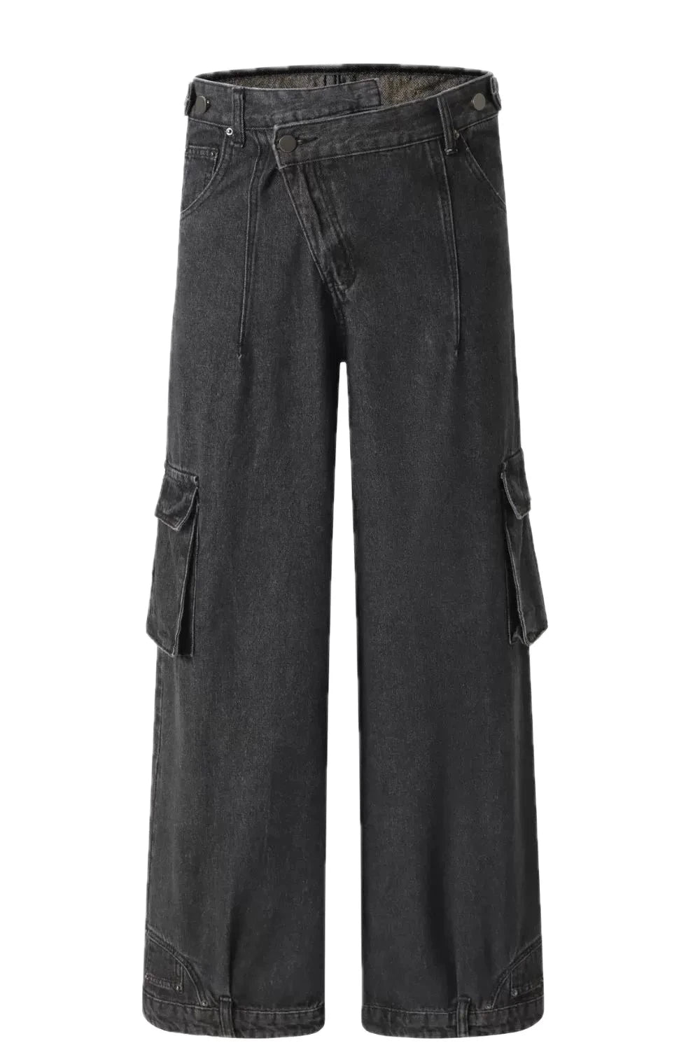 Men Wide Leg Cargo Jeans with Pockets Loose Fit Durable Baggy Pants for Casual Everyday Outdoor Use 100 Percent Cotton