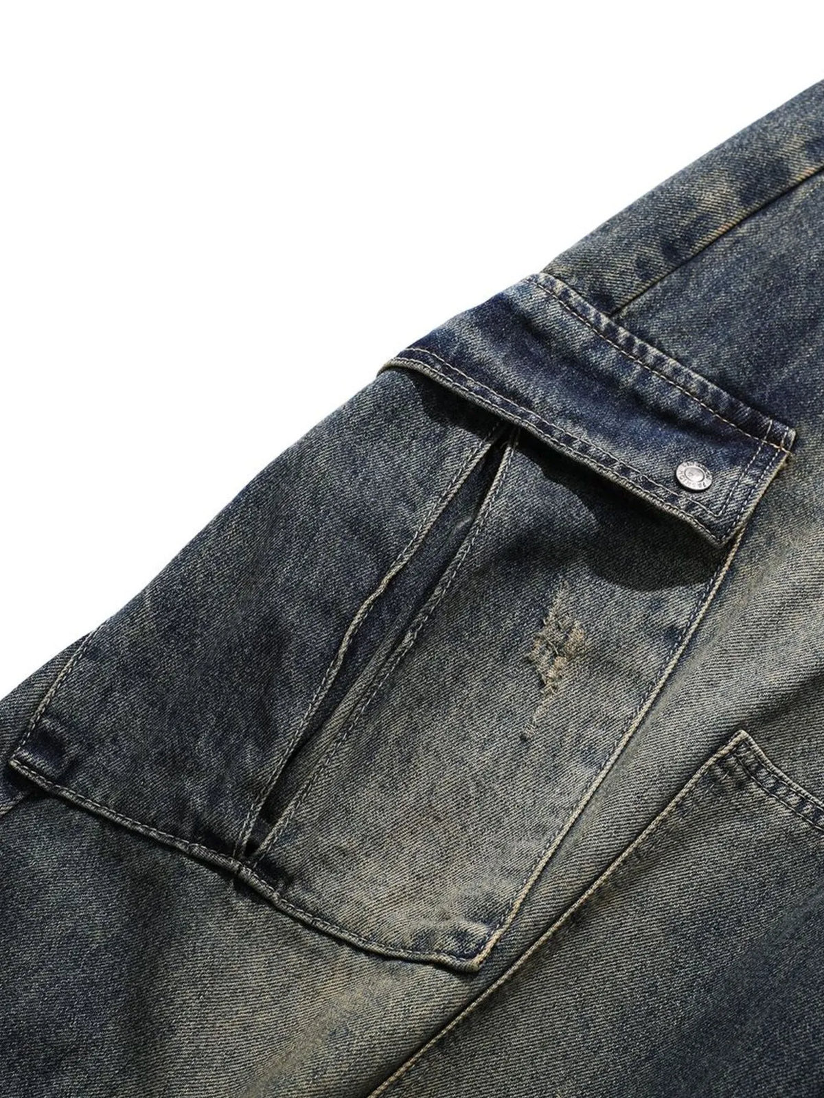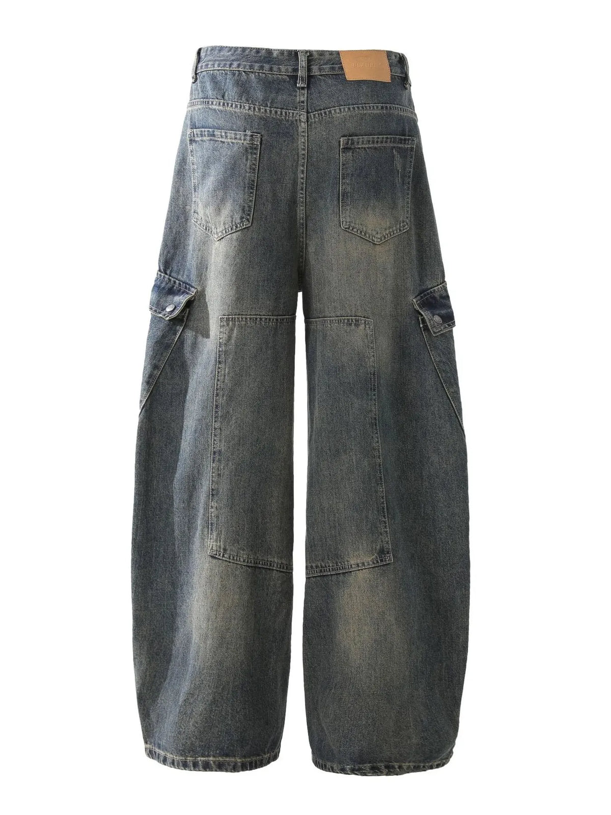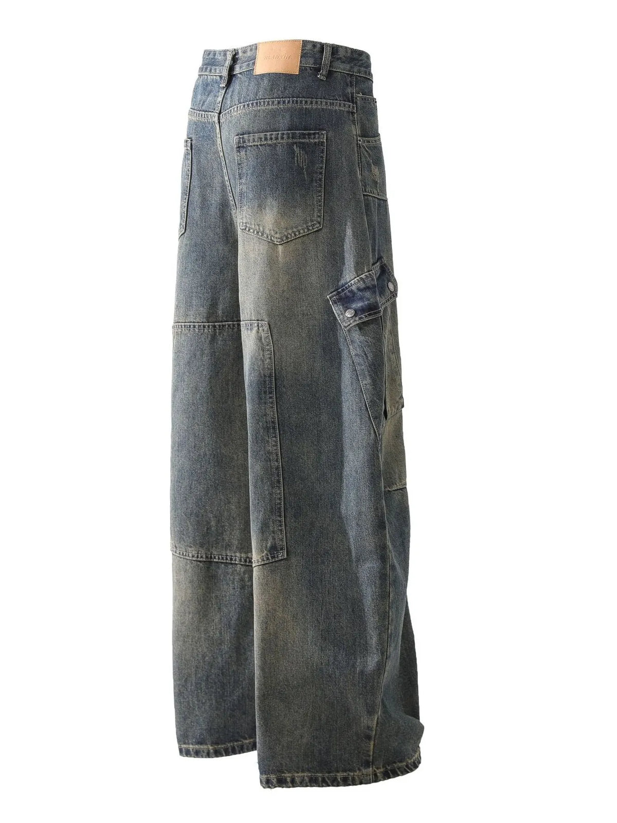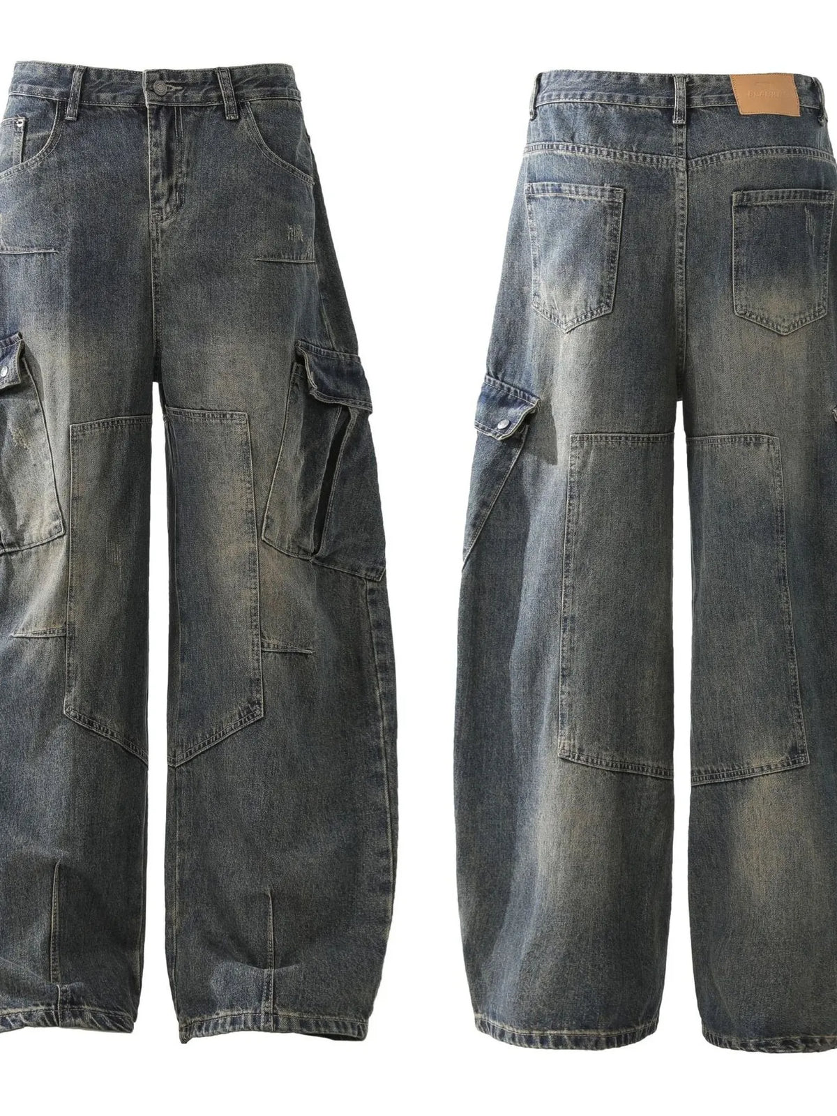 Mens Wide Leg Cargo Jeans Durable Relaxed Fit Work Pants with Multiple Pockets for Outdoor Casual Wear Everyday Comfort
