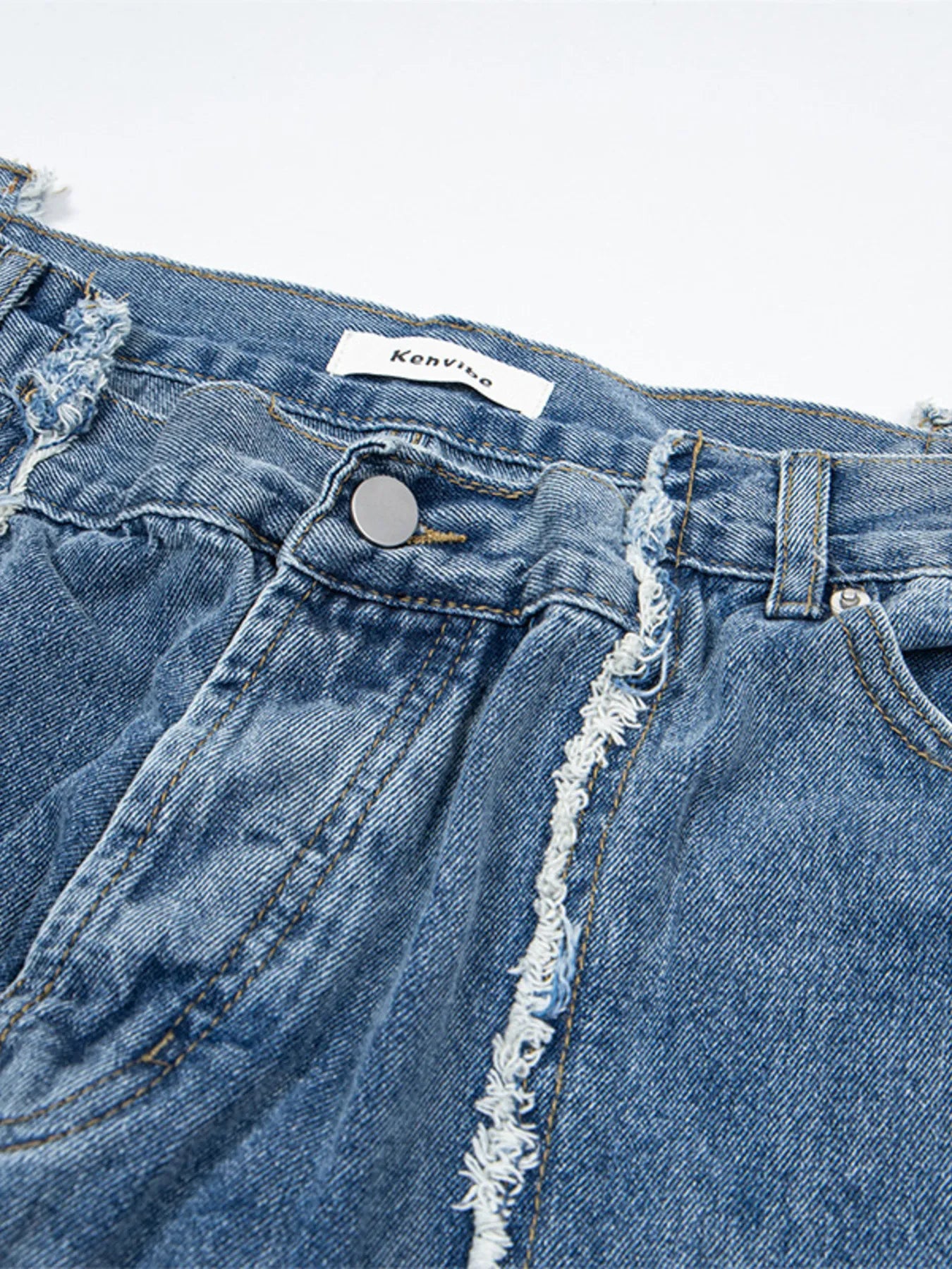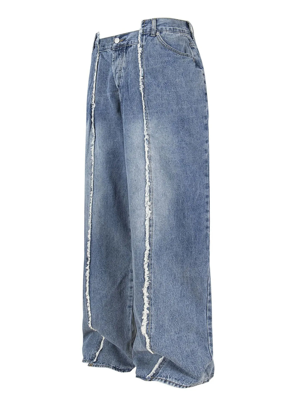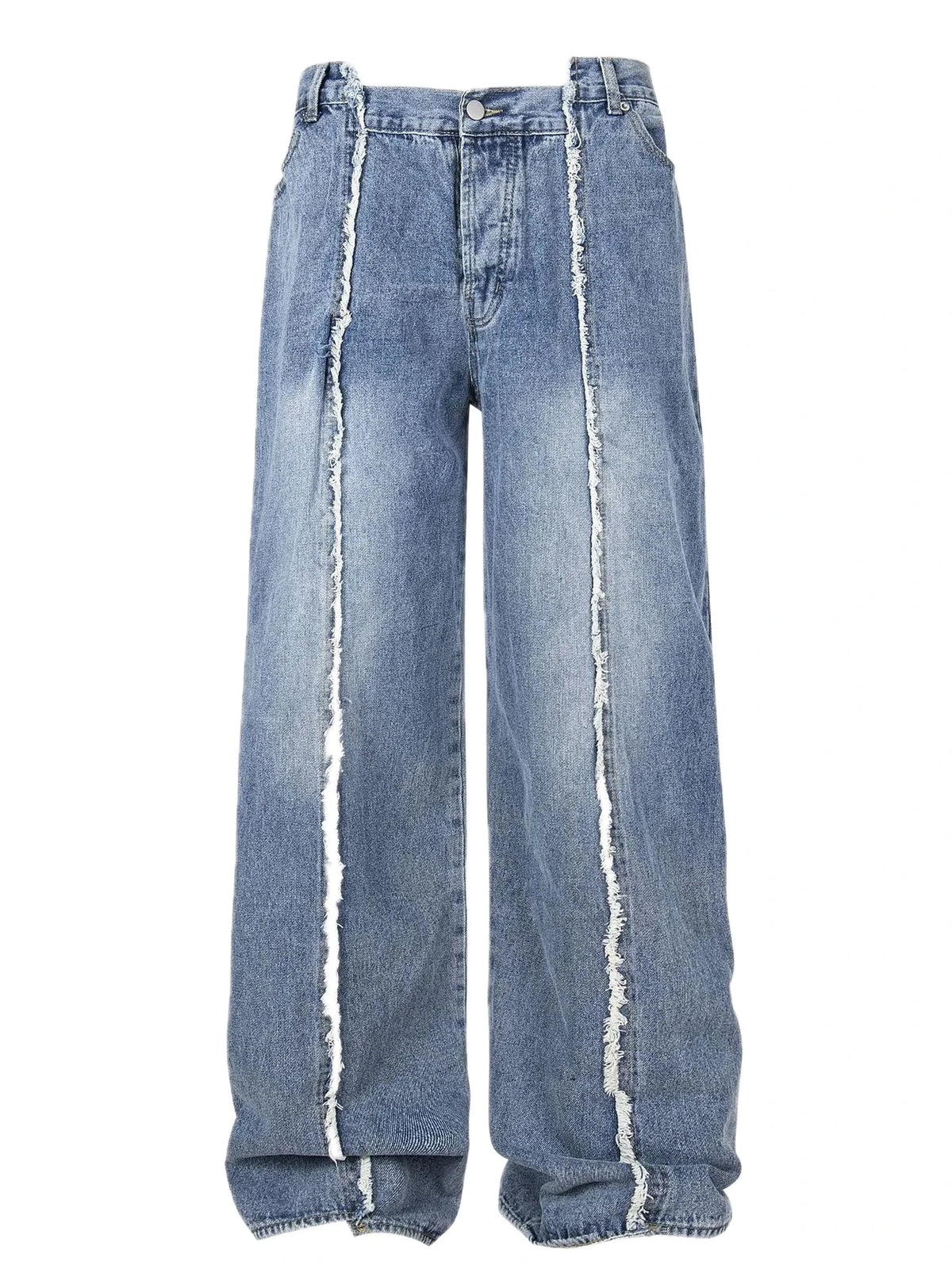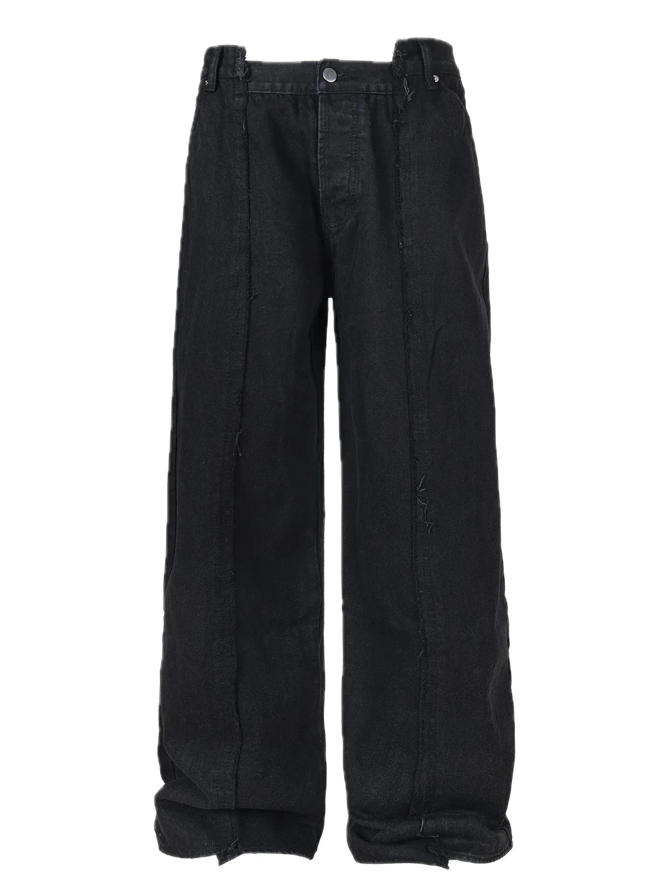 Mens Wide Leg Frayed Seam Denim Jeans Oversized Fit Durable Casual Everyday Wear Loose Silhouette Frayed Hem Style
