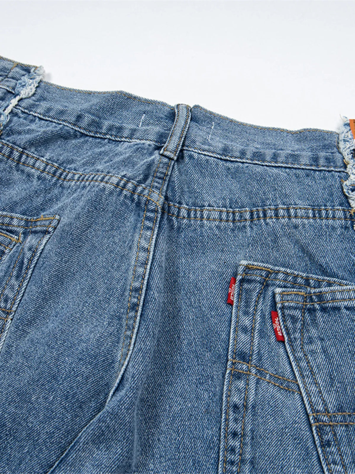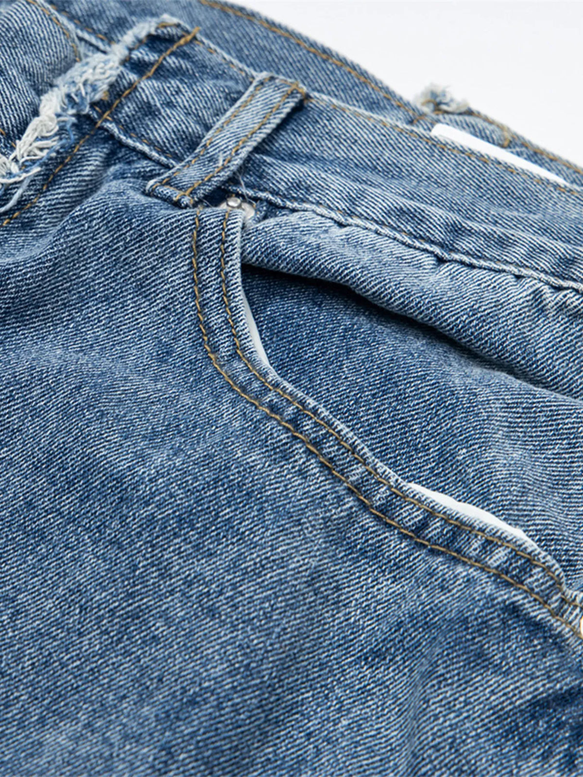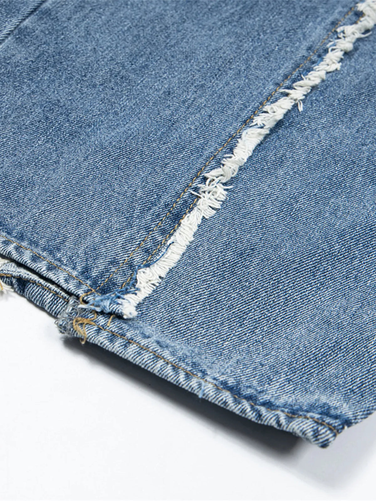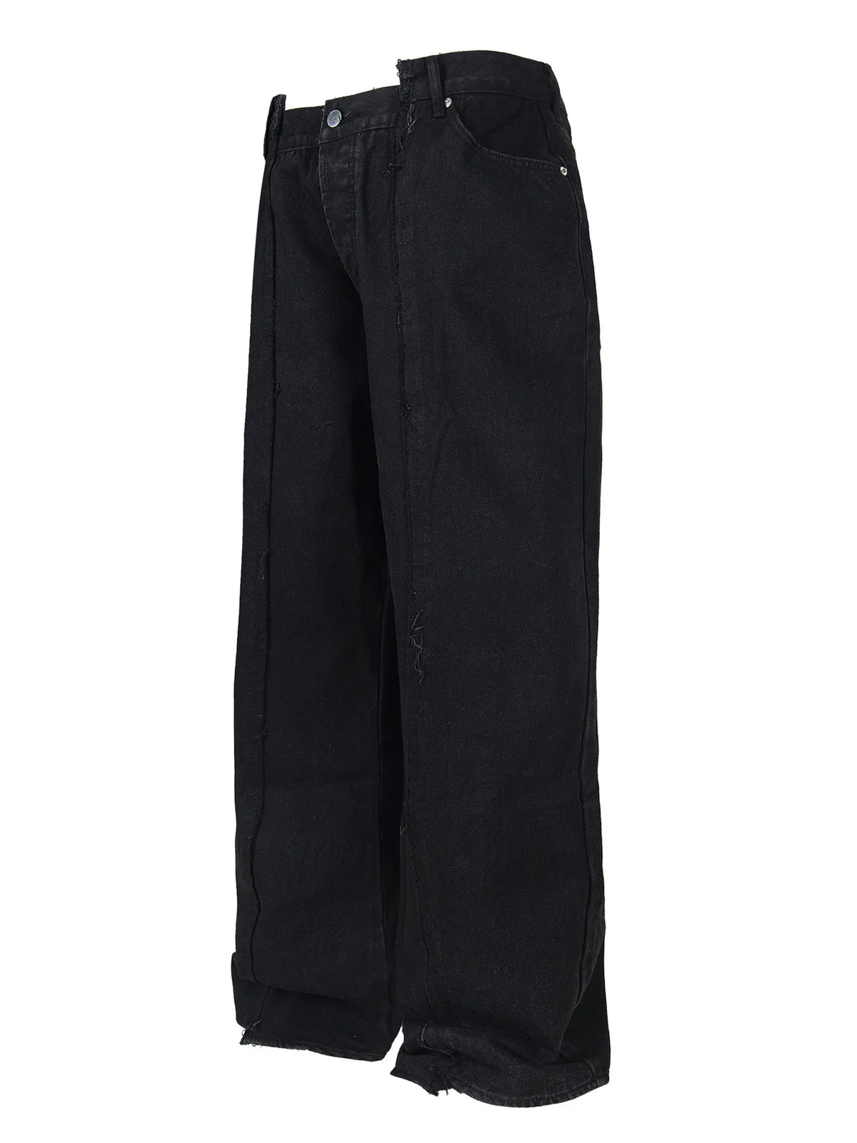 Mens Wide Leg Frayed Seam Denim Jeans Oversized Fit Durable Casual Everyday Wear Loose Silhouette Frayed Hem Style