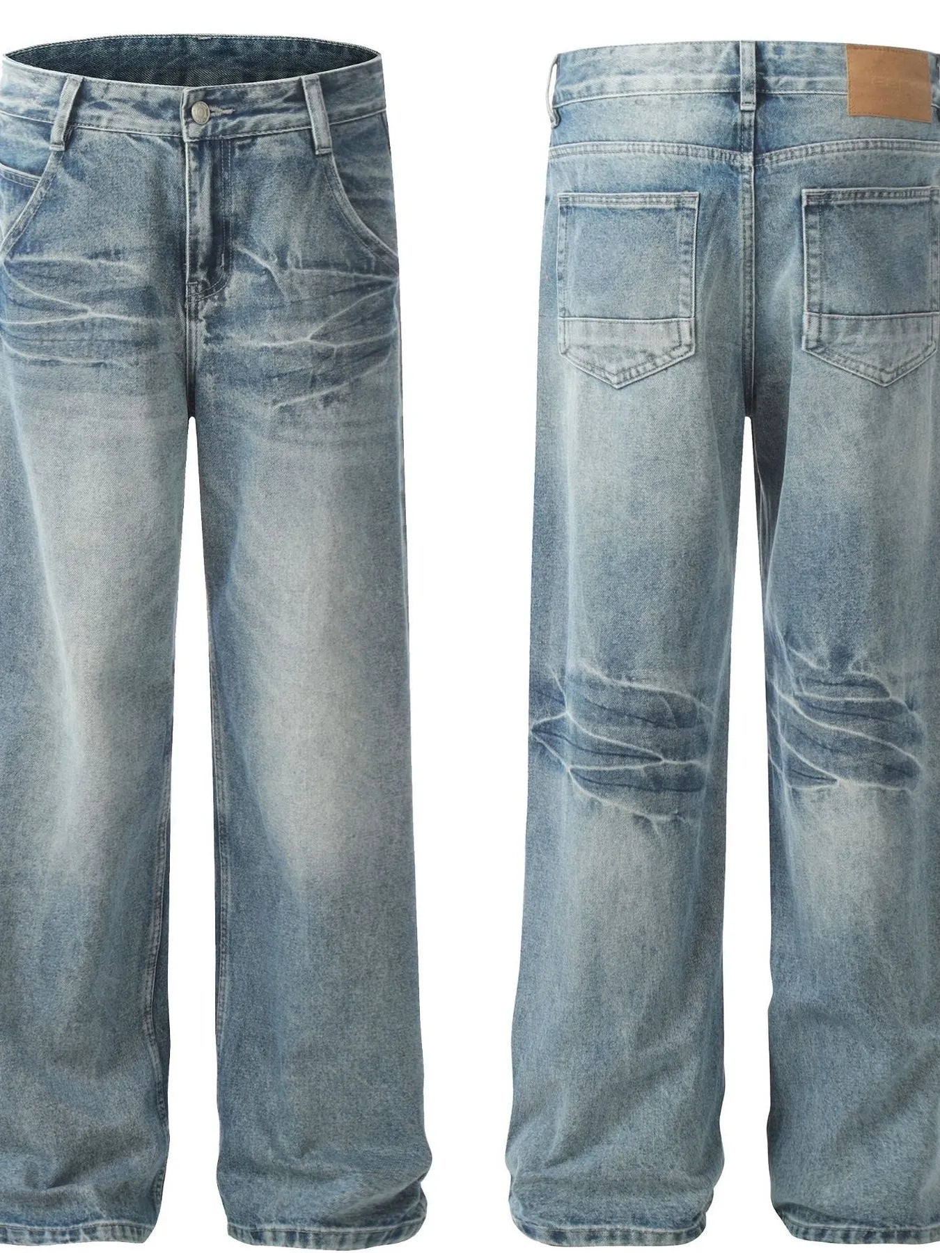 Mens Wide Leg High Waist Jeans in Washed Denim for Casual Everyday Wear with Flattering Modern Fit and Stretch