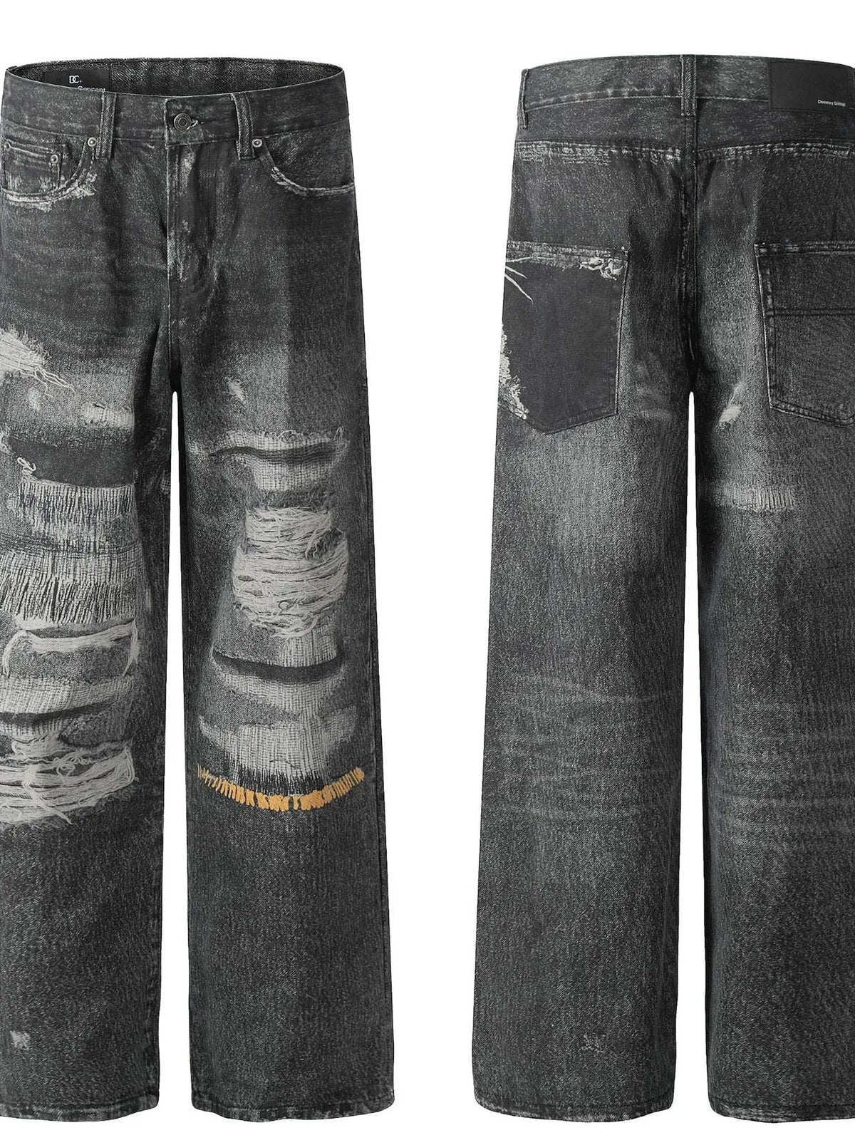 Mens Wide Leg Jeans Distressed Pocketed Washed 100 Percent Cotton Denim Casual Everyday Loose Fit Pants Daily Wear