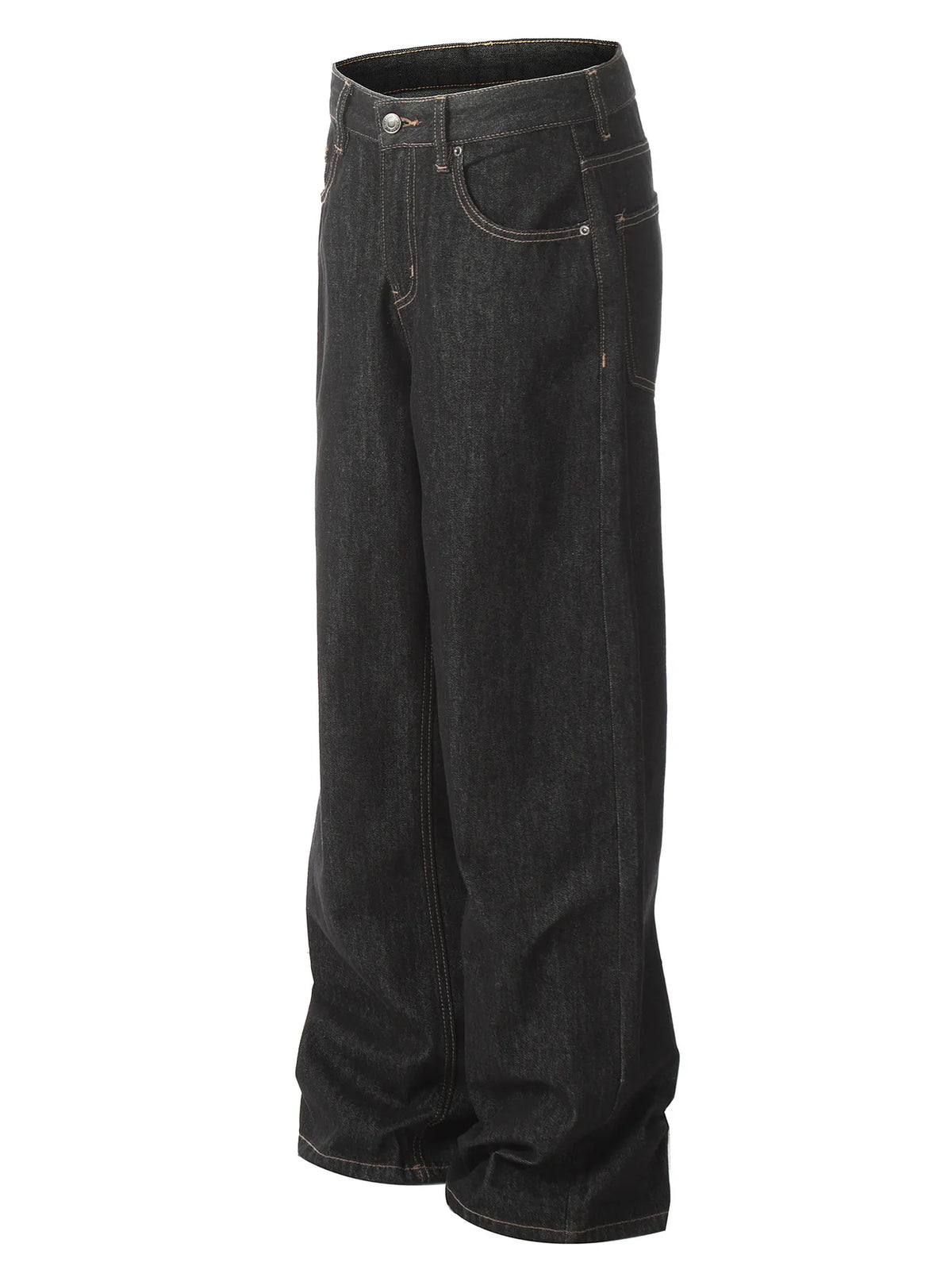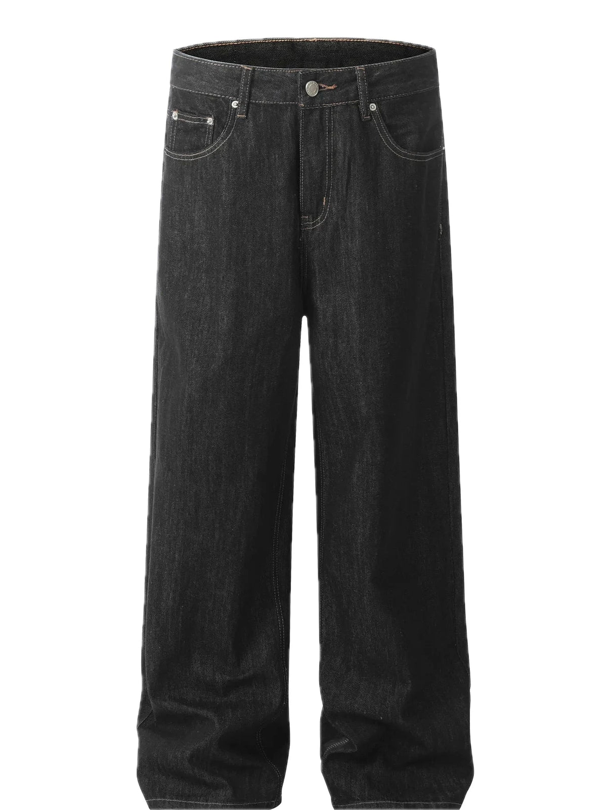 Mens Wide Leg Jeans Washed Finish Basic Design Durable Denim Pants for Everyday Casual Wear Relaxed Fit Classic Style