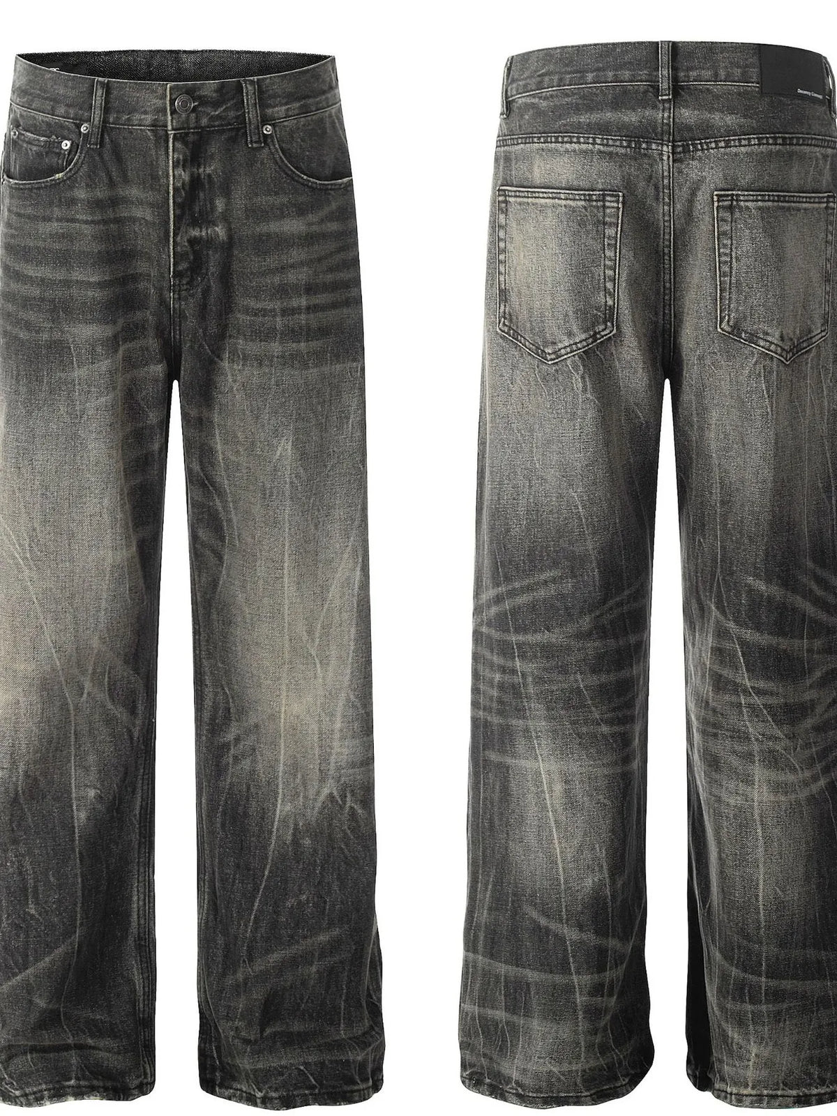 Mens Wide Leg Jeans Loose Fit Baggy Denim Pants with Pockets Zipper Closure Washed Durable Casual Everyday Wear