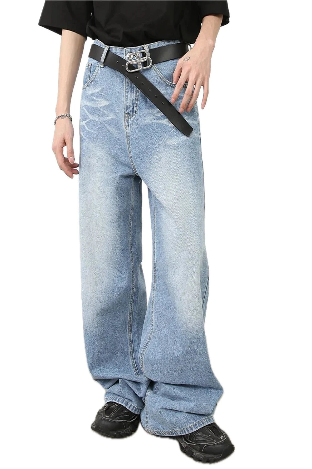 Mens Wide Leg Jeans Loose Fit Baggy Denim Pants with Pockets Casual Everyday Streetwear Fashion Versatile Durable