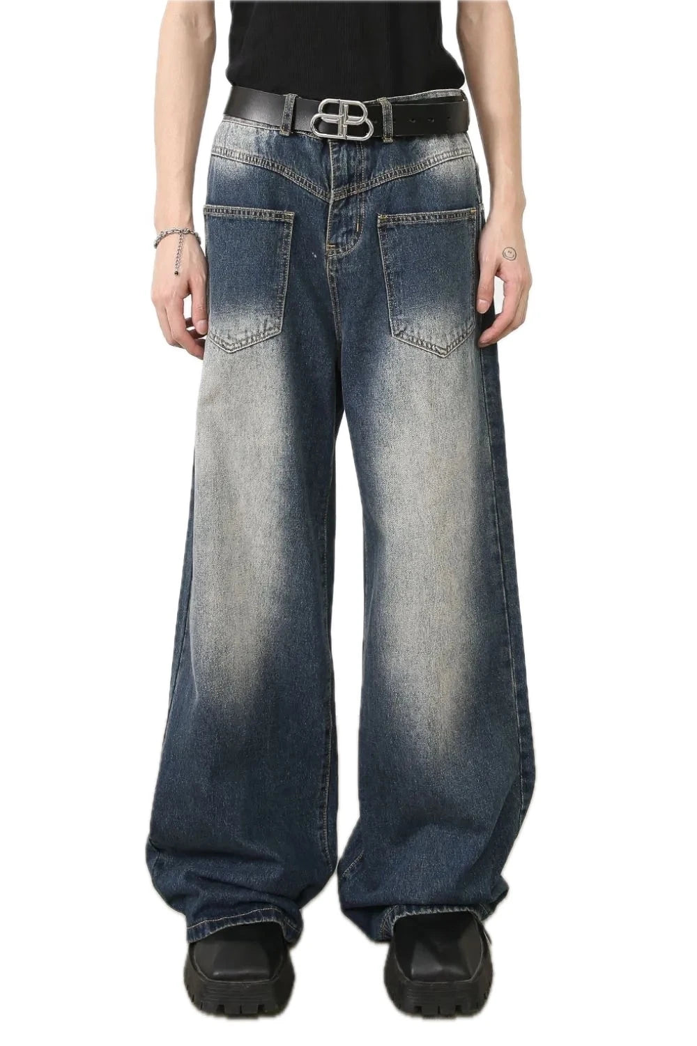 Mens Wide Leg Jeans with Pockets No Stretch Loose Fit Casual Durable Denim Pants for Everyday Wear Relaxed Fit