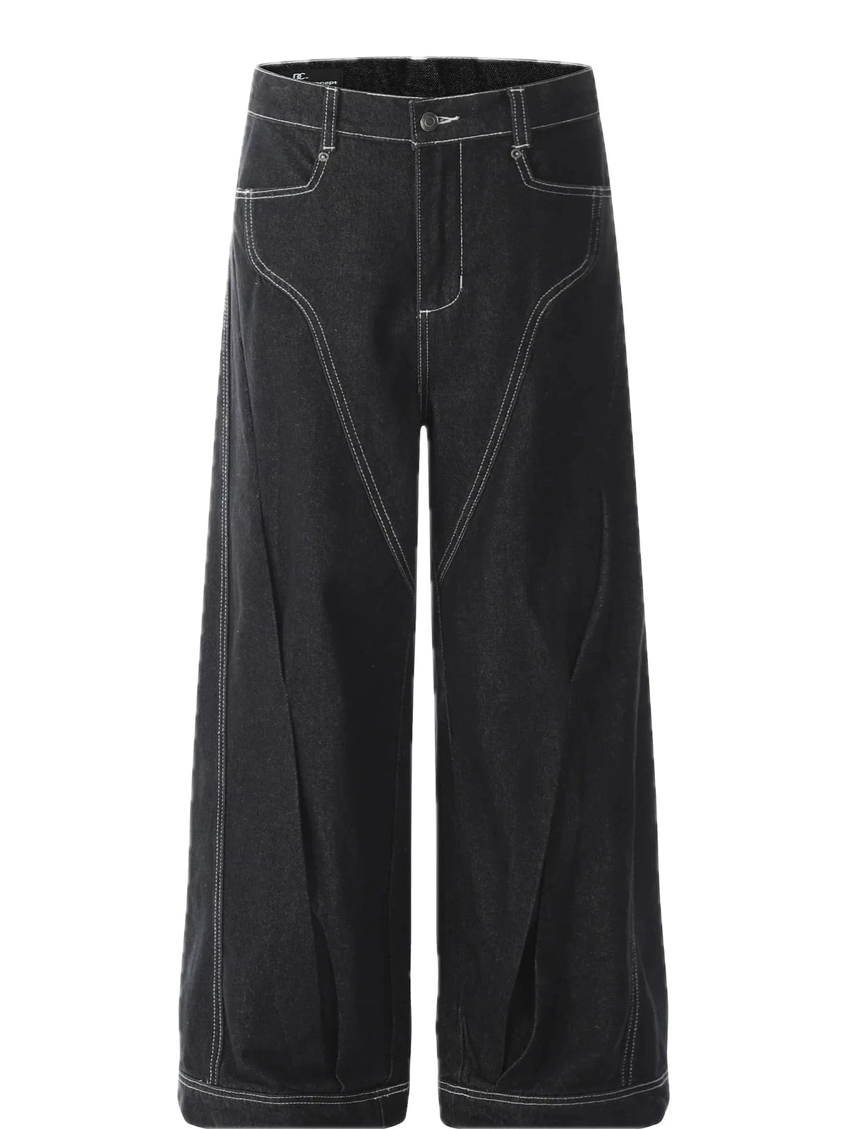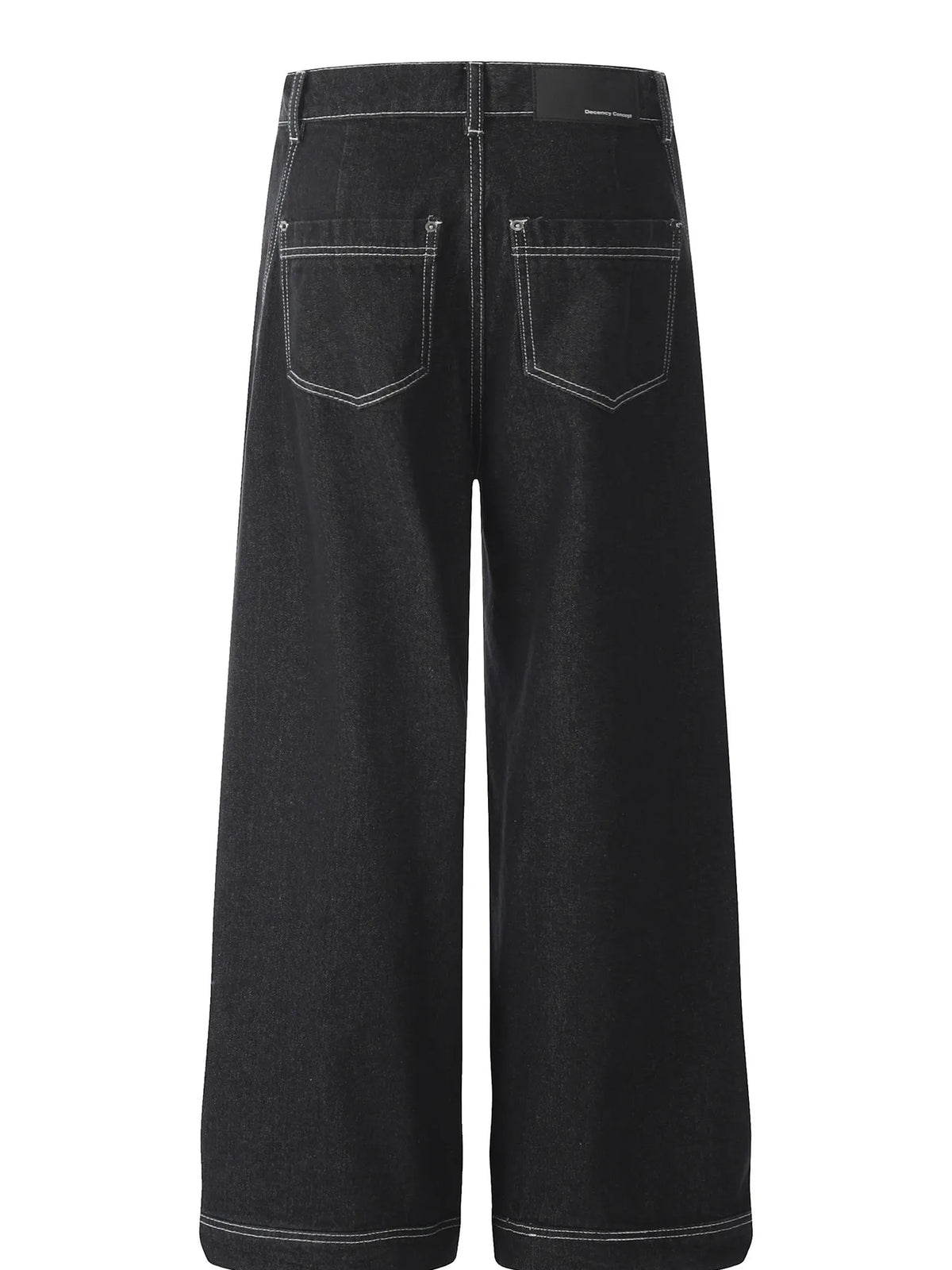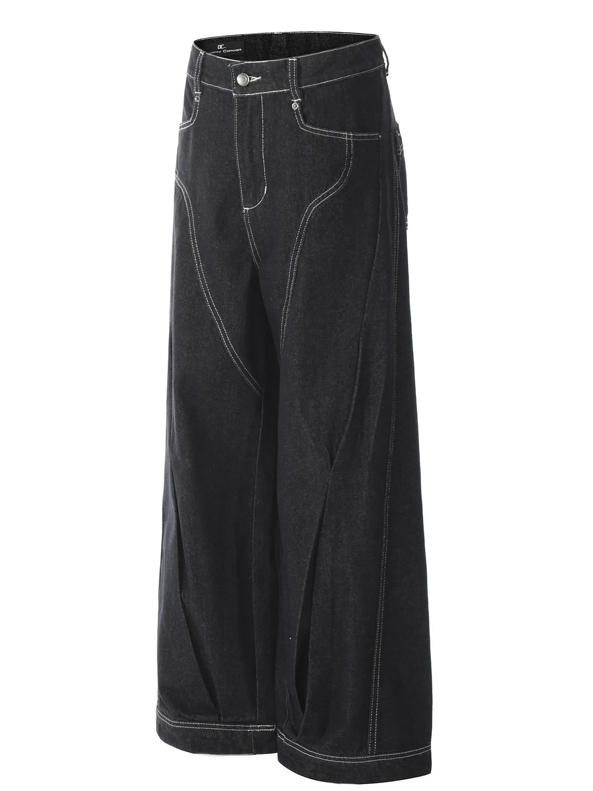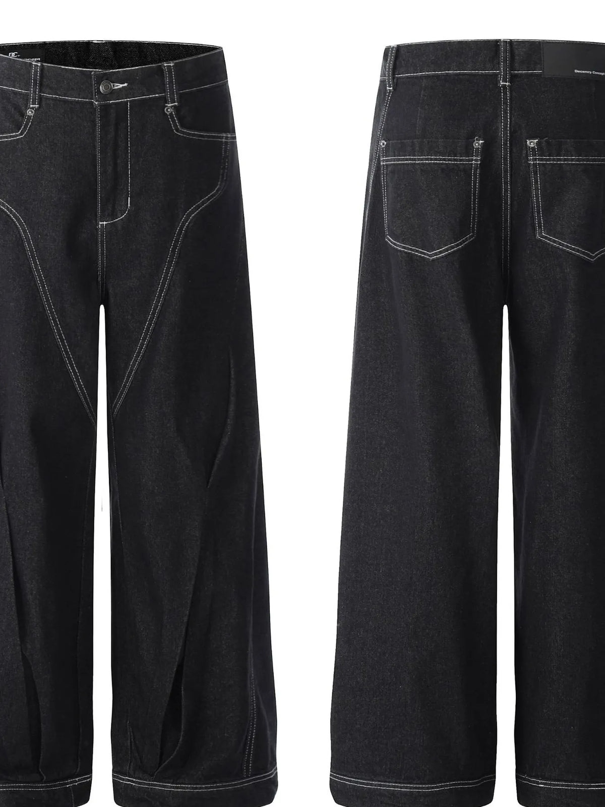 Mens Wide Leg Jeans with Contrast Stitching Pocketed Loose Fit Denim Pants Casual Everyday Trousers Durable Essential
