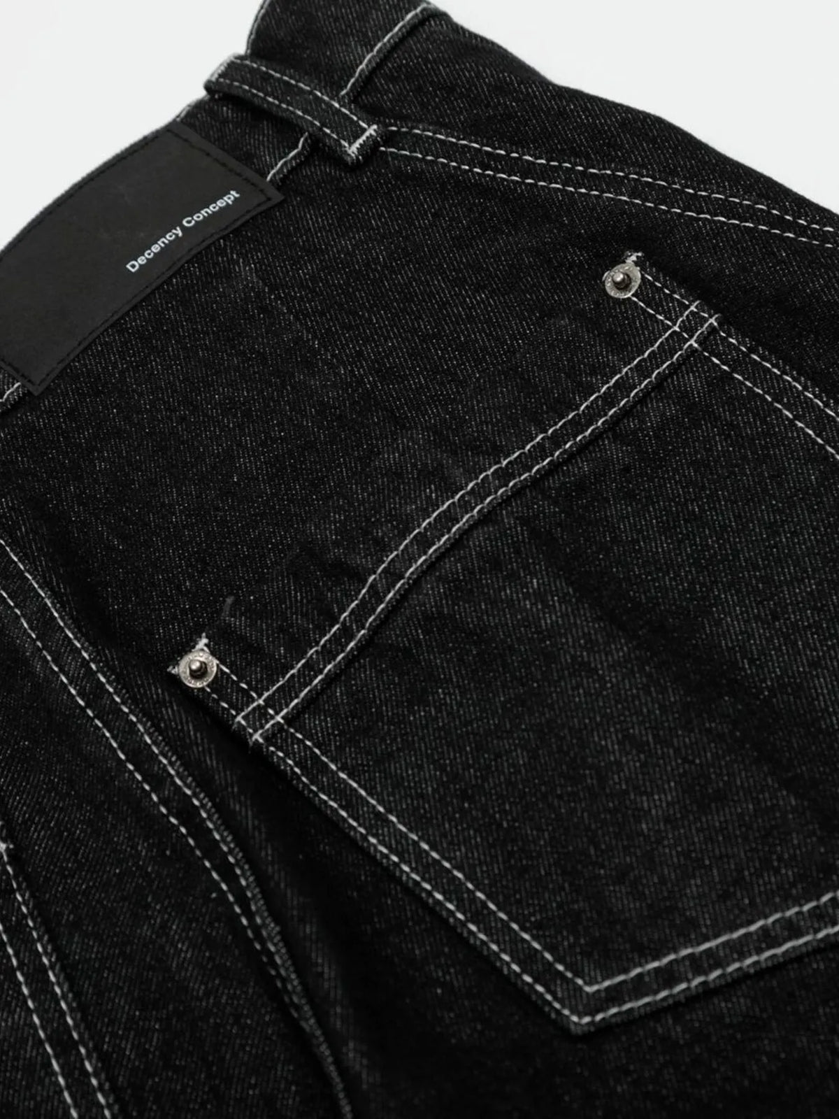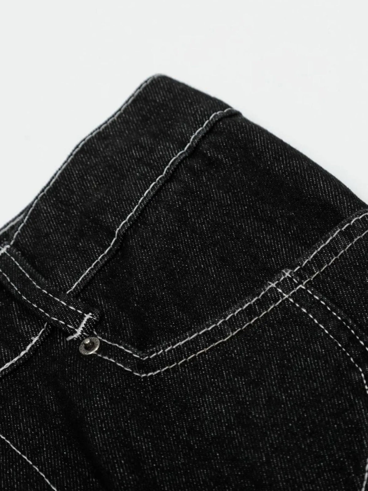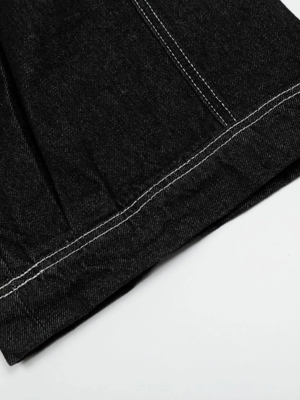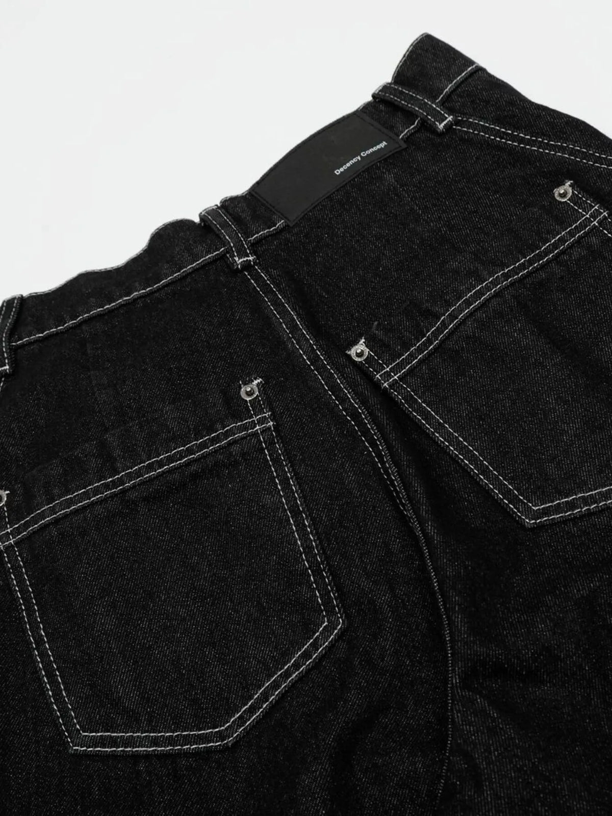 Mens Wide Leg Jeans with Contrast Stitching Pocketed Loose Fit Denim Pants Casual Everyday Trousers Durable Essential