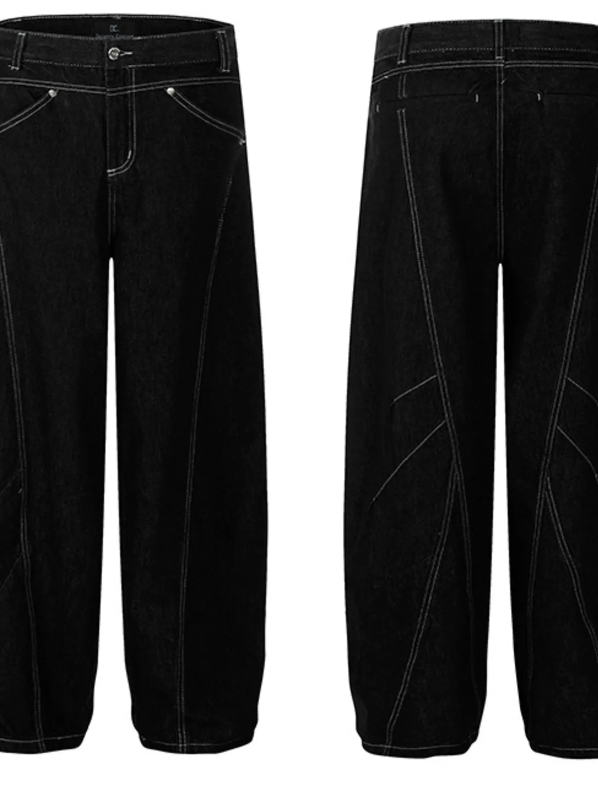 Mens Wide Leg Jeans with Contrast Stitching Oversized Fit Pocketed Seam Detail Durable Denim Casual Pants for daily use