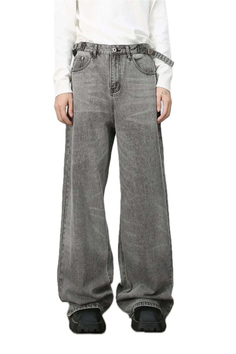 Mens Wide Leg Jeans With Pockets Loose Fit Durable Casual Pants Versatile Everyday Wear Classic Relaxed Fit Trousers