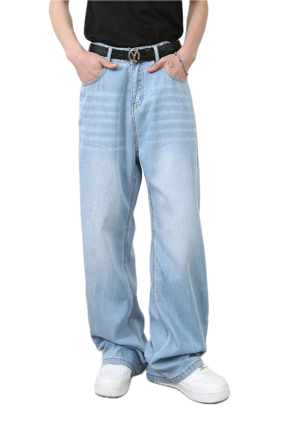 Mens Wide Leg Jeans with Pockets Casual Loose Fit Durable Denim Trousers for Everyday Fashion Versatile Classic Design