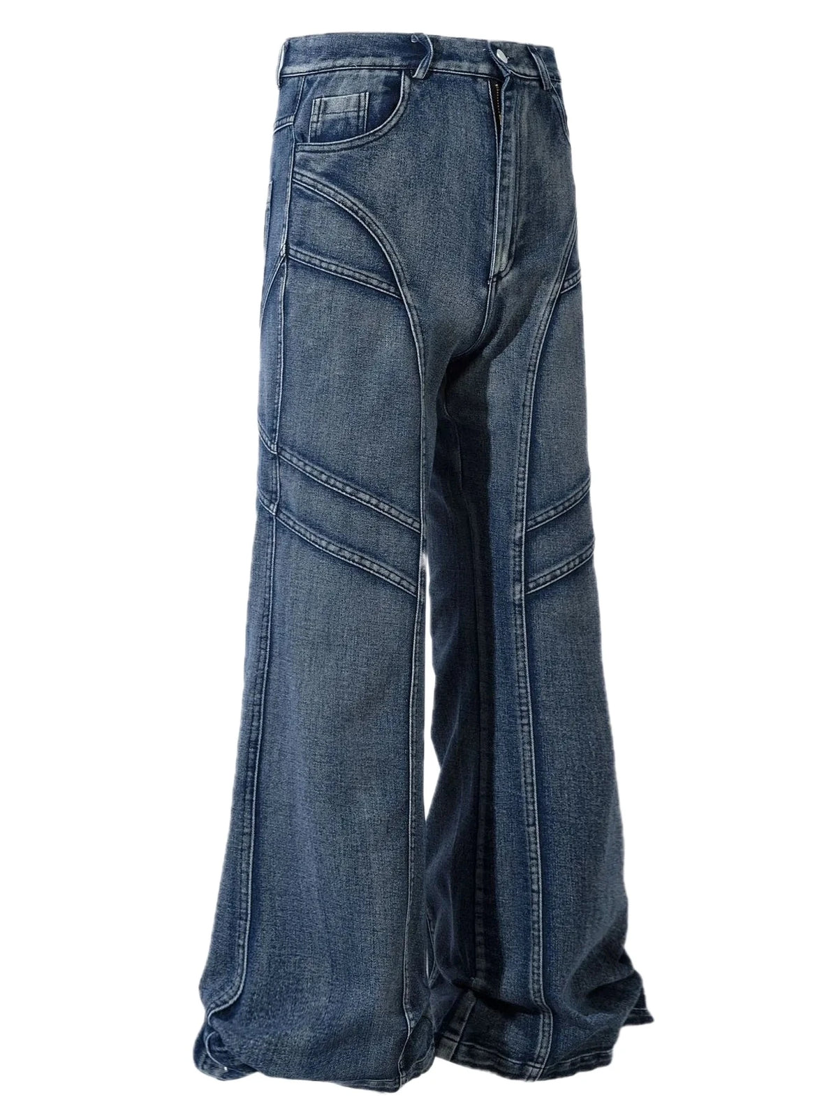 Mens Wide Leg Jeans with Seam Detail 100 Cotton Relaxed Fit Casual Denim Trousers for Everyday Wear Durable Comfort