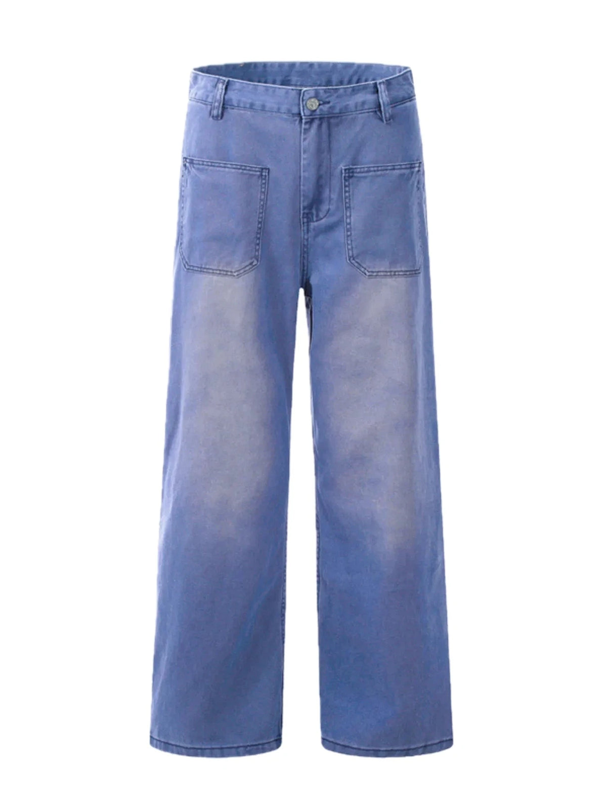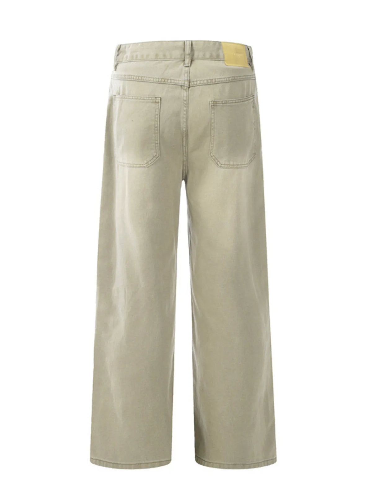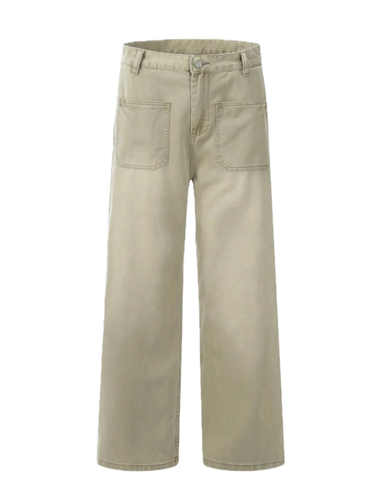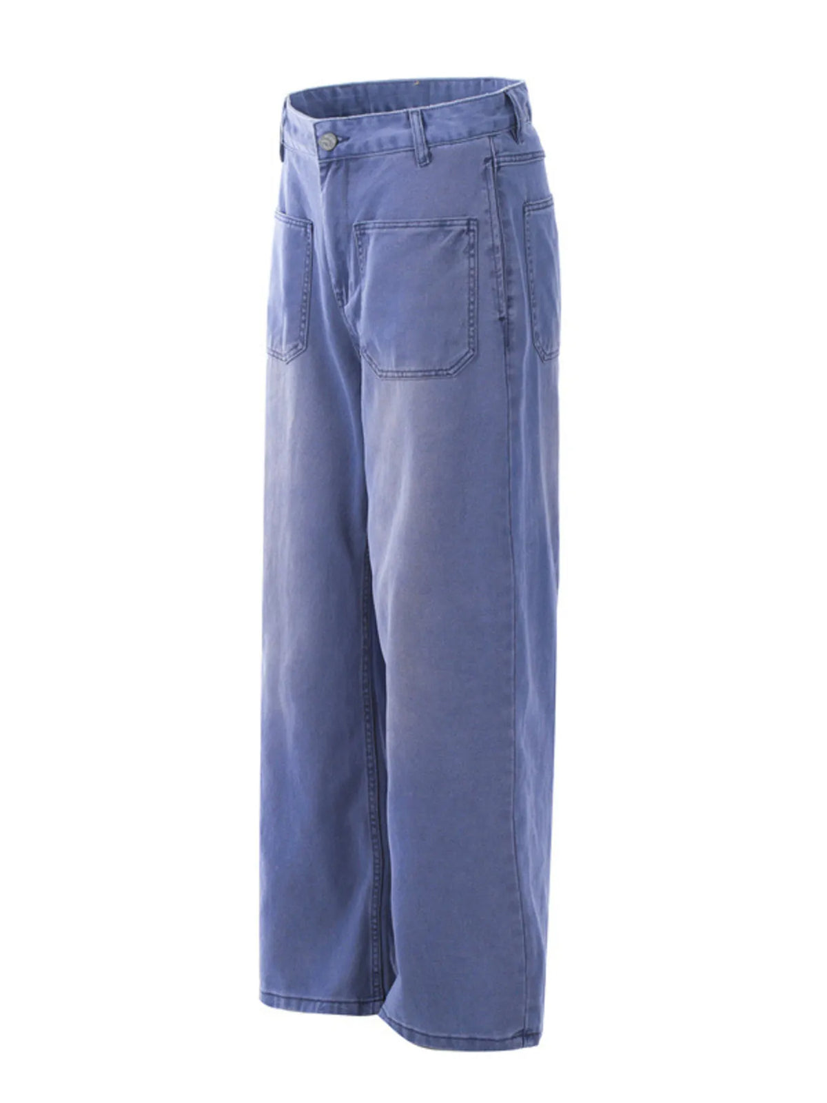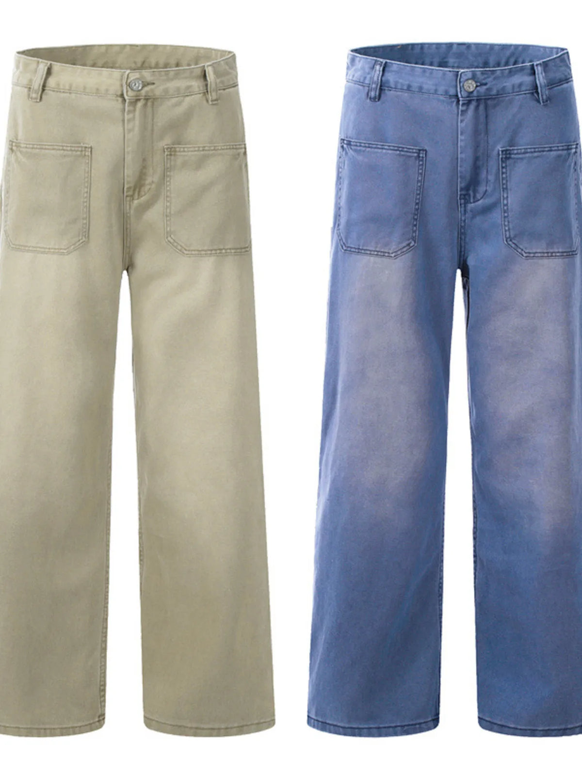 Mens wide leg pocketed pants casual relaxed fit loose trousers cotton blend fabric versatile everyday wear design
