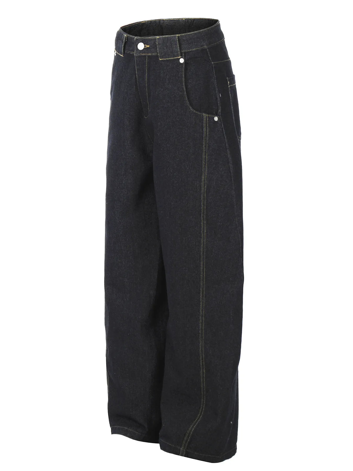 Men Wide Leg Washed Denim Jeans Oversized Pocketed Slightly Stretchy Casual Everyday Relaxed Fit Durable Versatile
