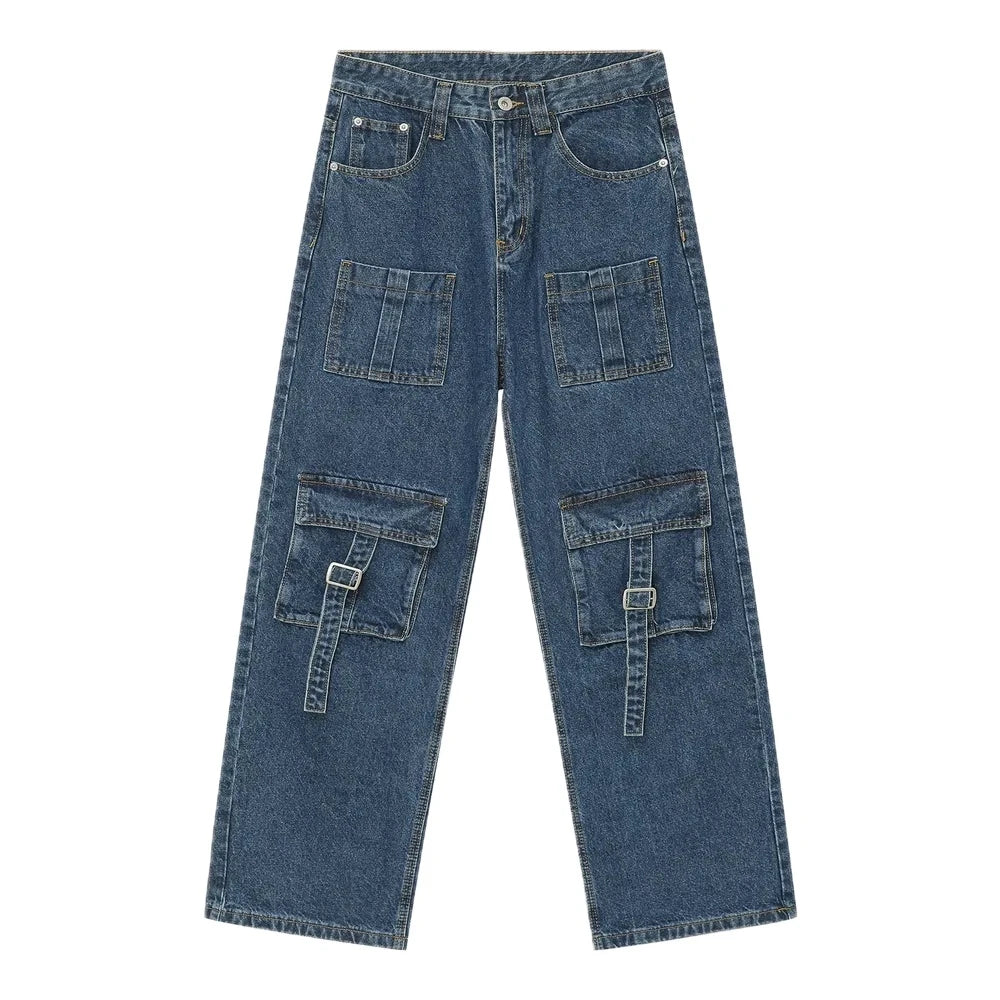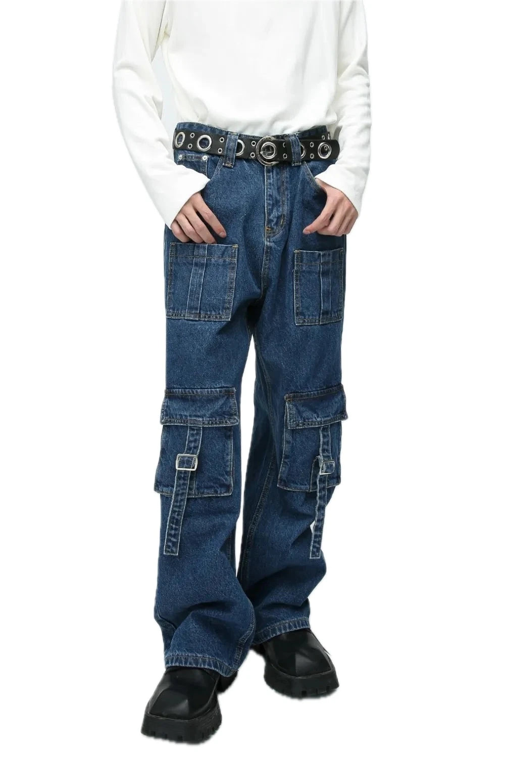 Mens Mid Rise Jeans with Cargo Pockets Durable Denim Pants for Casual Work and Outdoor Activities with Comfortable Fit