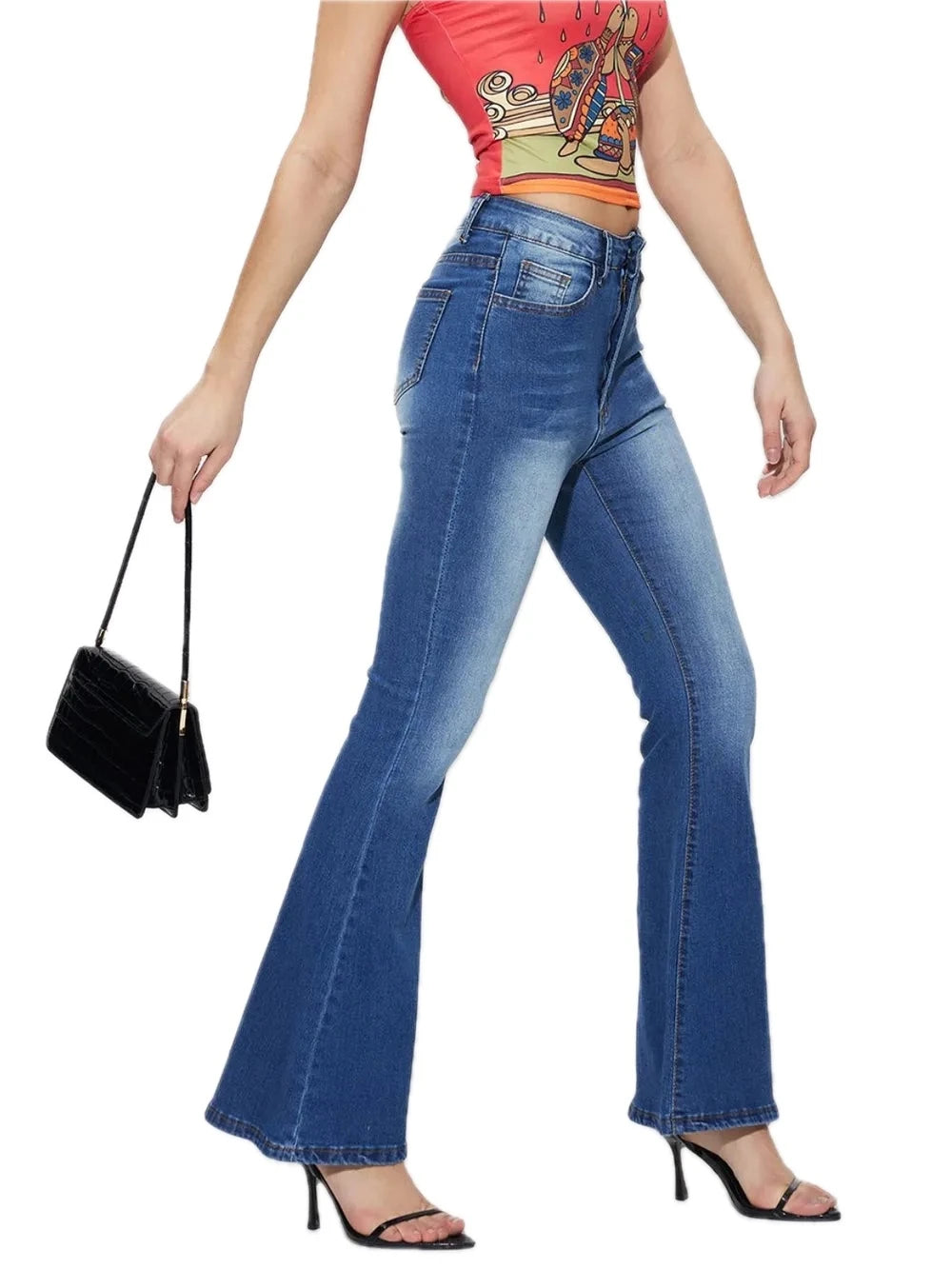 Women Mid Rise Bootcut Jeans with Pockets Button Closure Non Stretch Classic Fit Everyday Cotton Polyester Blend