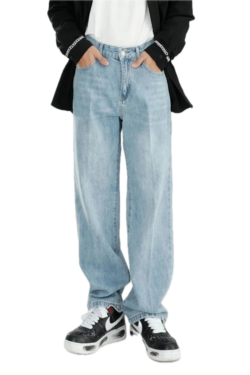 Womens Mid Rise Wide Leg Straight Jeans with Pockets Durable Denim Pants for Versatile Everyday Casual Attire Daily