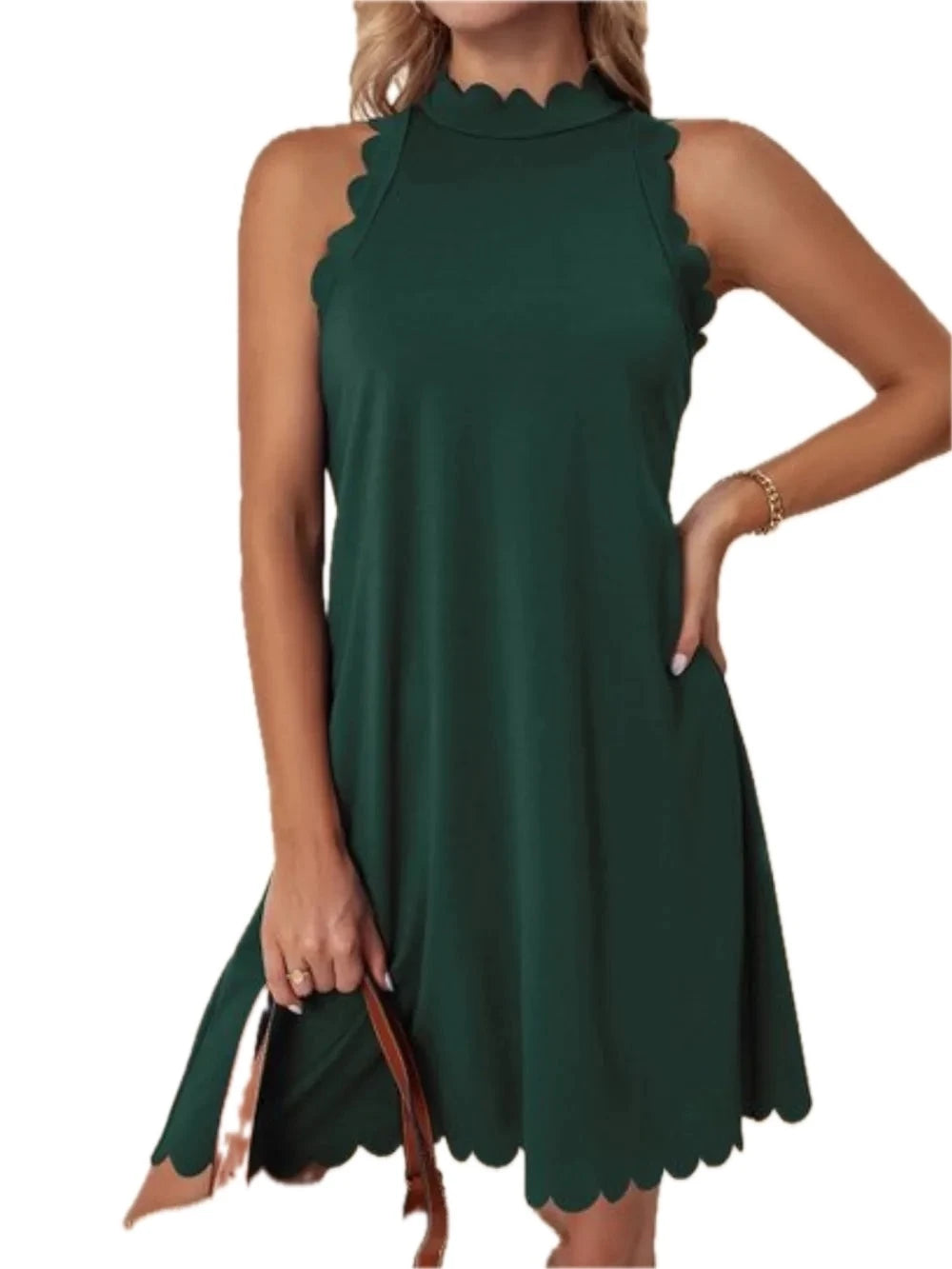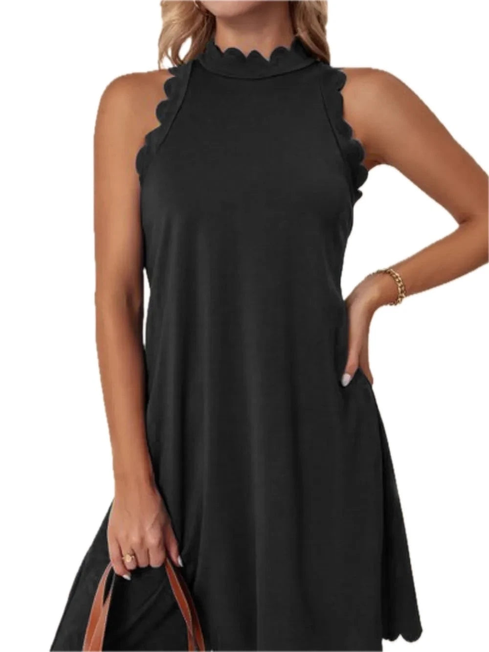 Women's Mock Neck Sleeveless Mini Dress Elegant Day Night Wear 95% Polyester 5% Spandex Ideal for Day to Night Styling