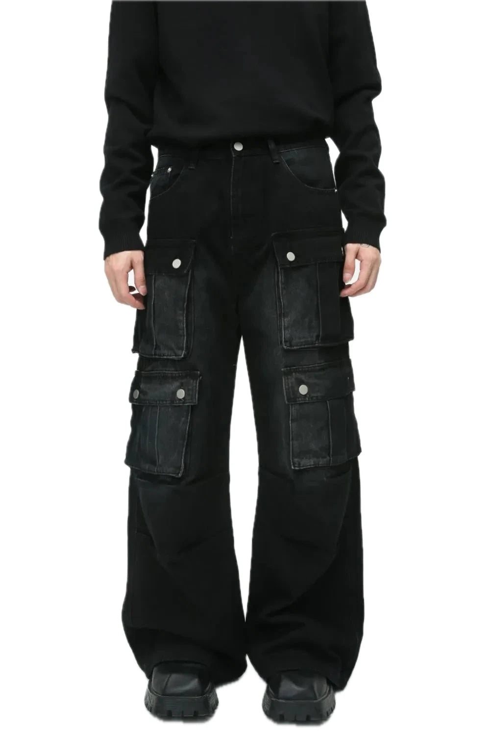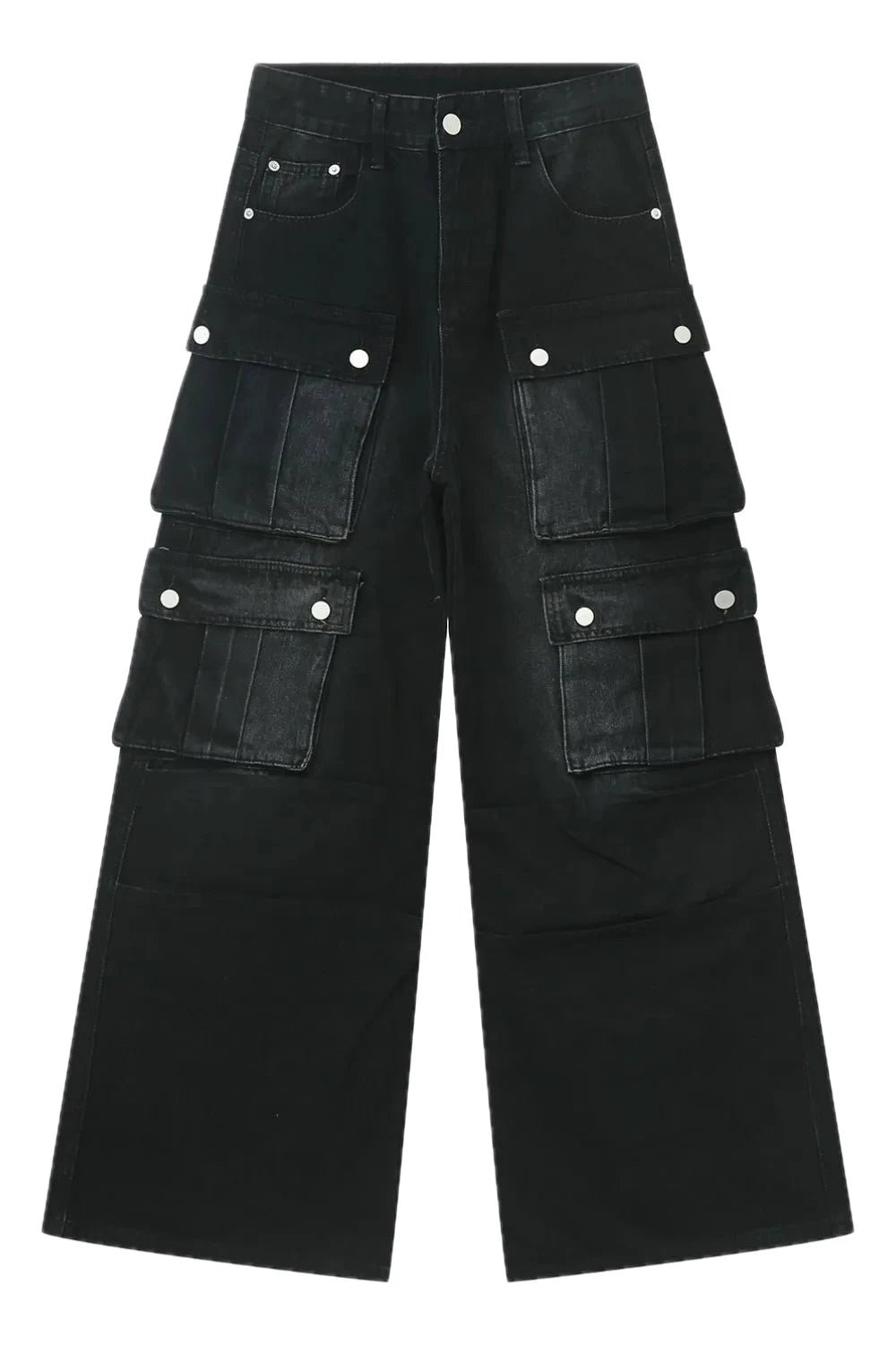 Womens Cargo Wide Leg Jeans with Multiple Pockets Casual Everyday Durable Denim Pants Loose Fit for Everyday Wear