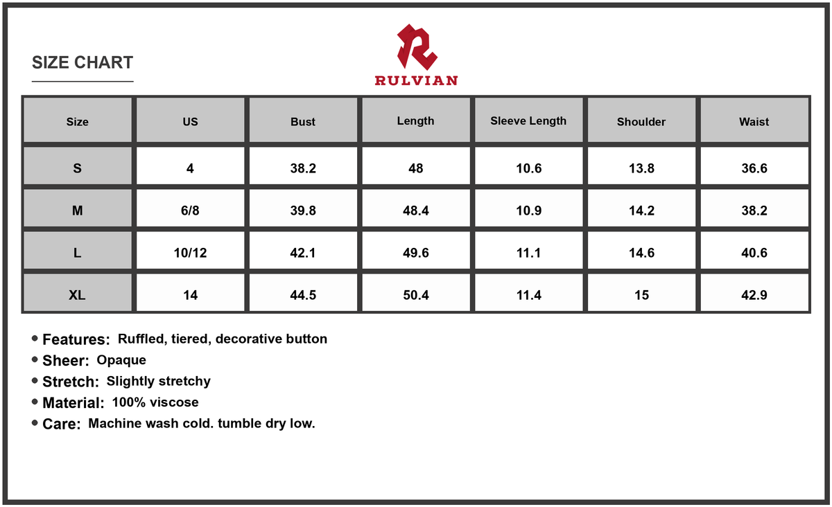 Size | US | Bust | Length | Sleeve Length | Shoulder | Waist |