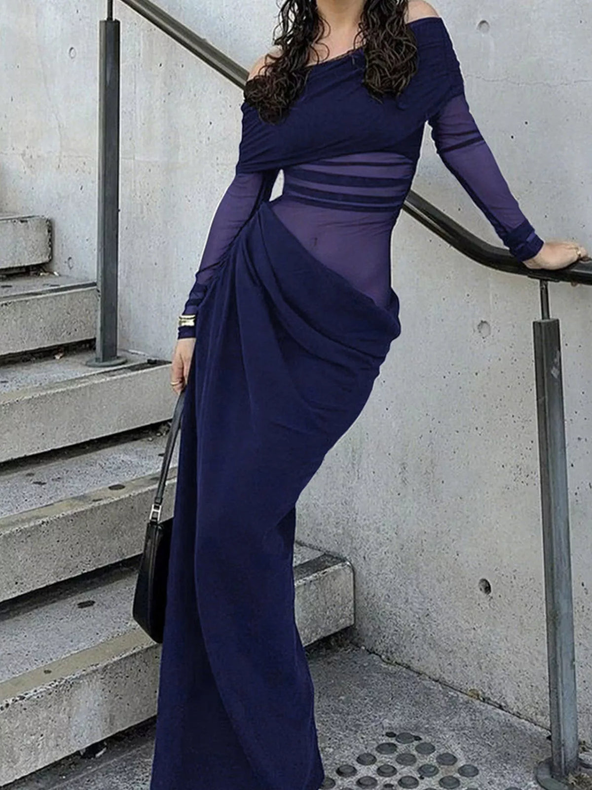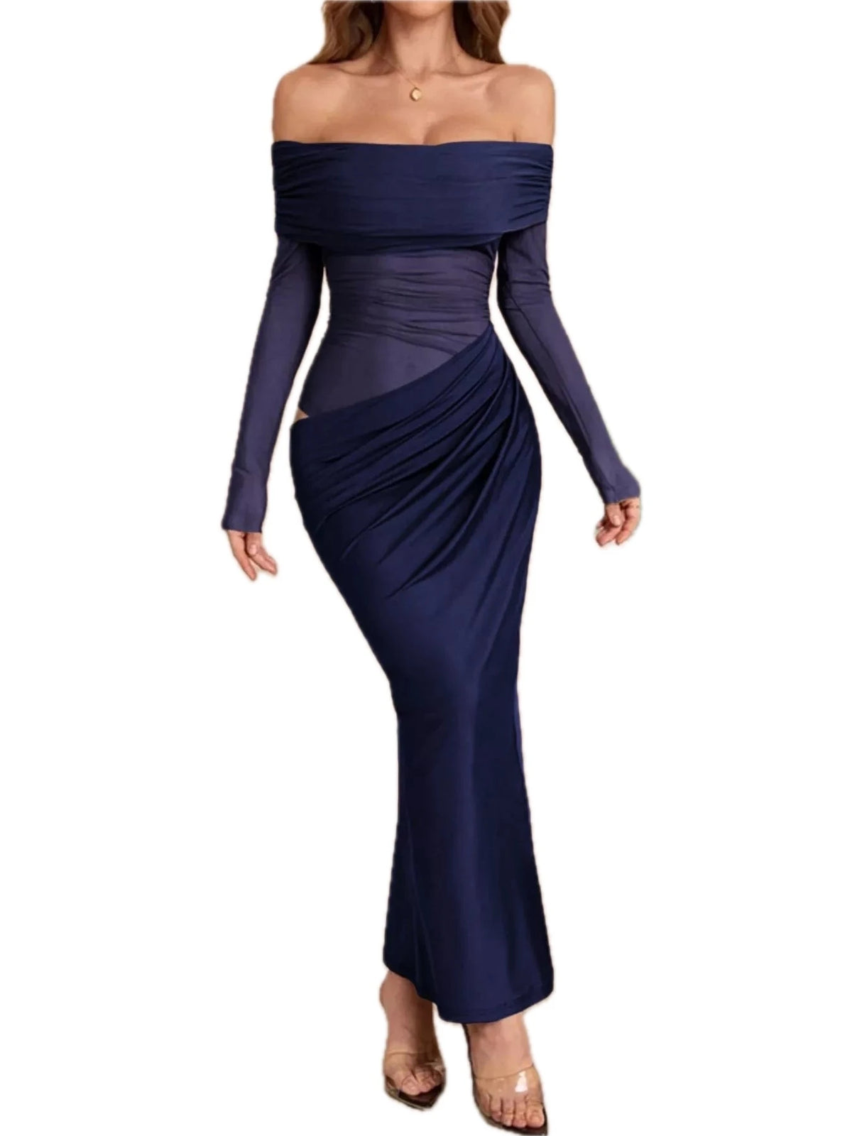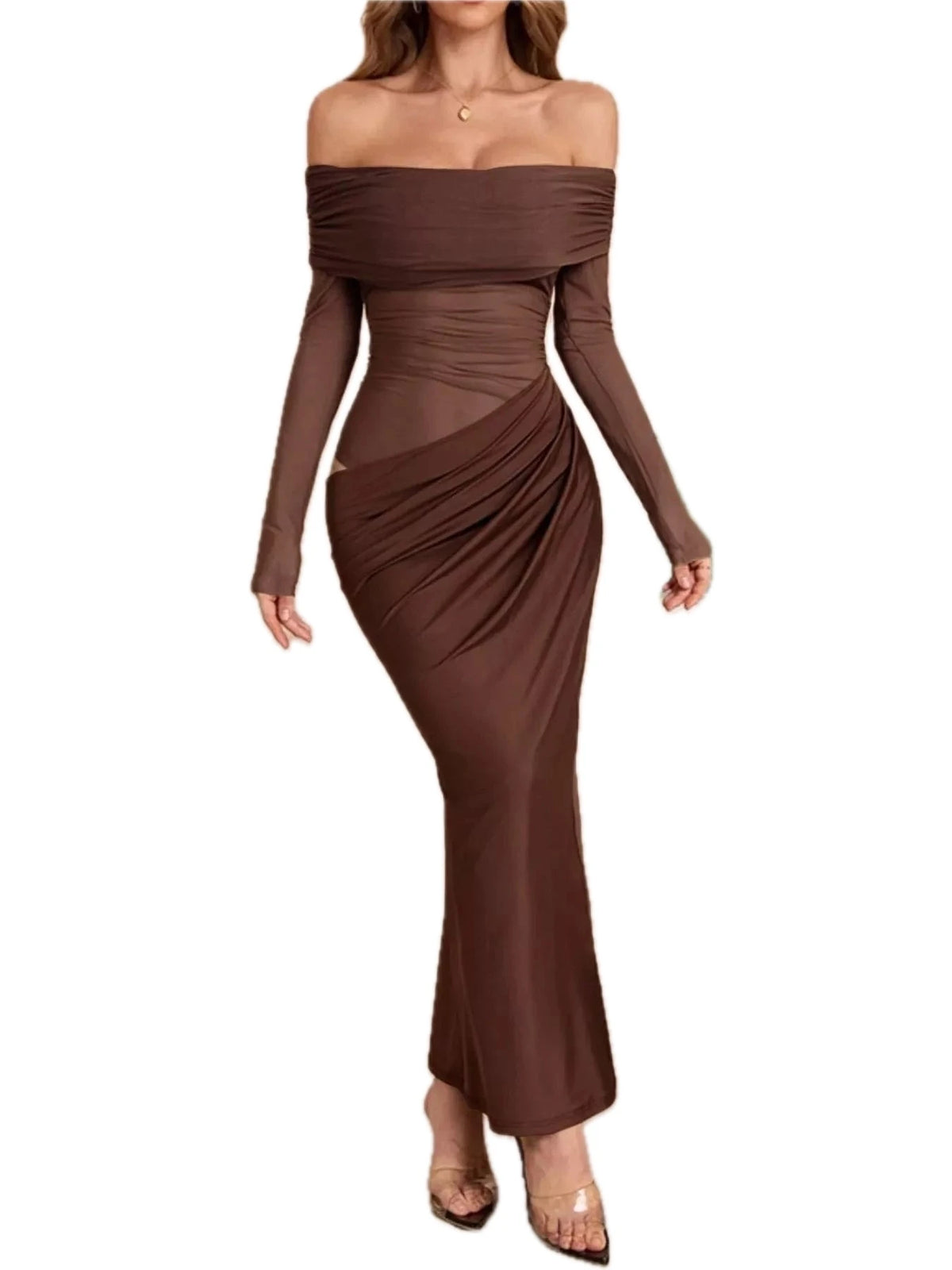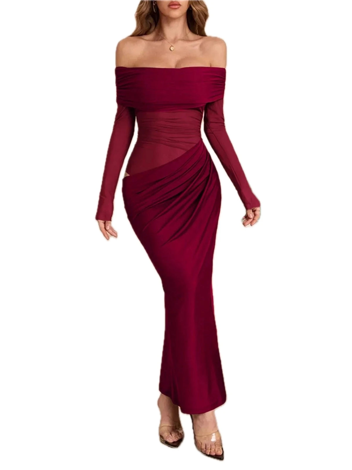 Women's Off Shoulder Long Sleeve Ruched Bodycon Maxi Dress 85% polyester 15% elastane comfortable fit for events