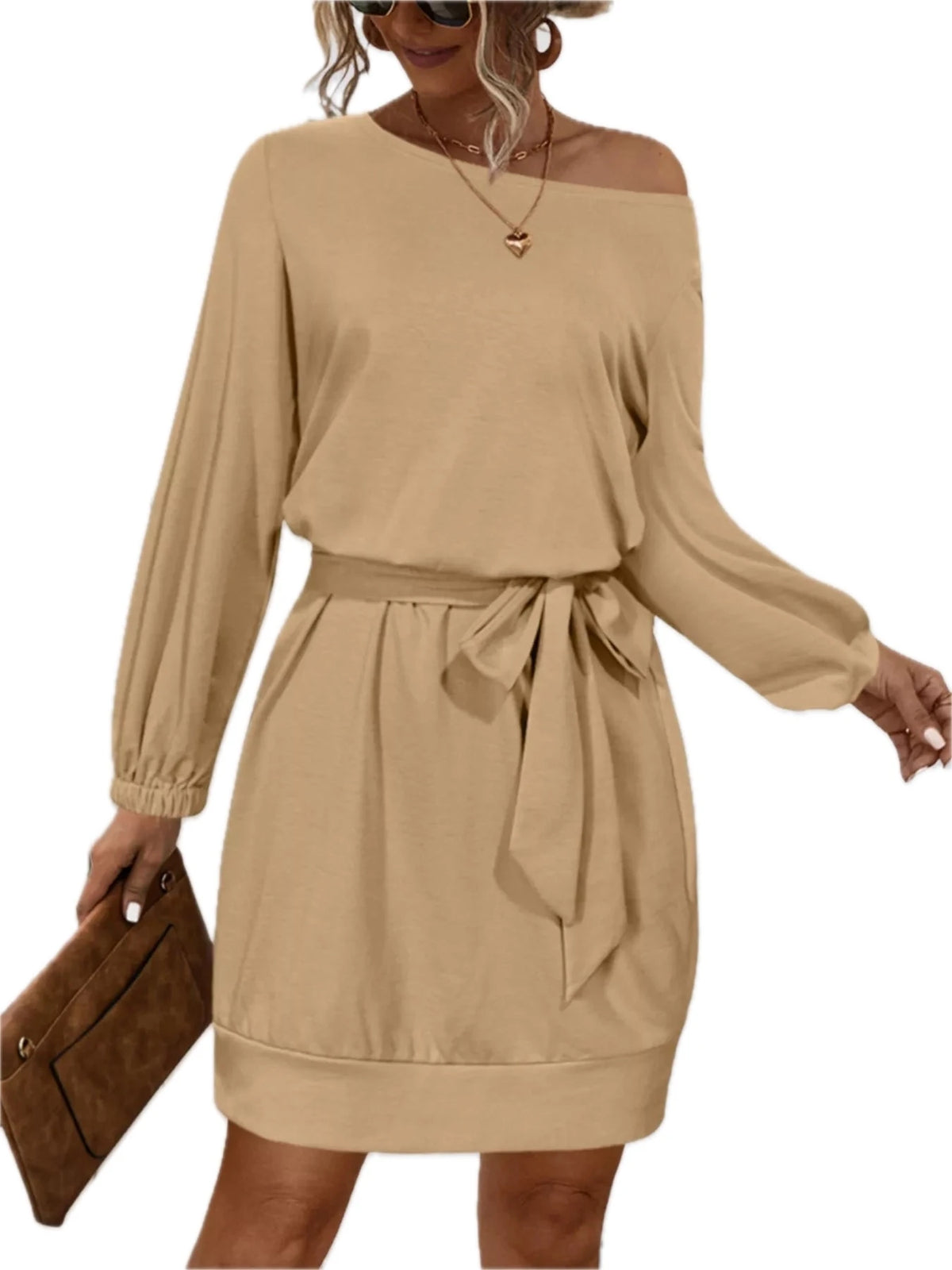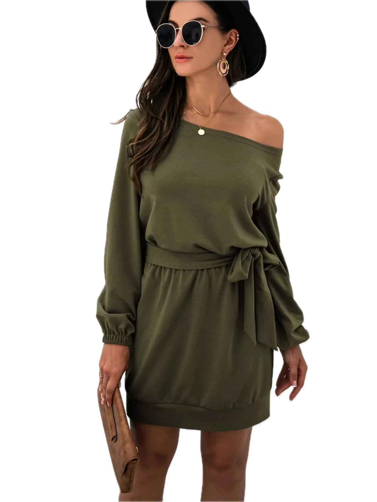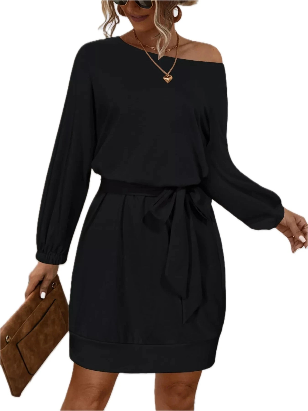 Women's One Shoulder Tie Waist Dress 95% polyester and 5% spandex fabric blend for a stylish silhouette for casual wear