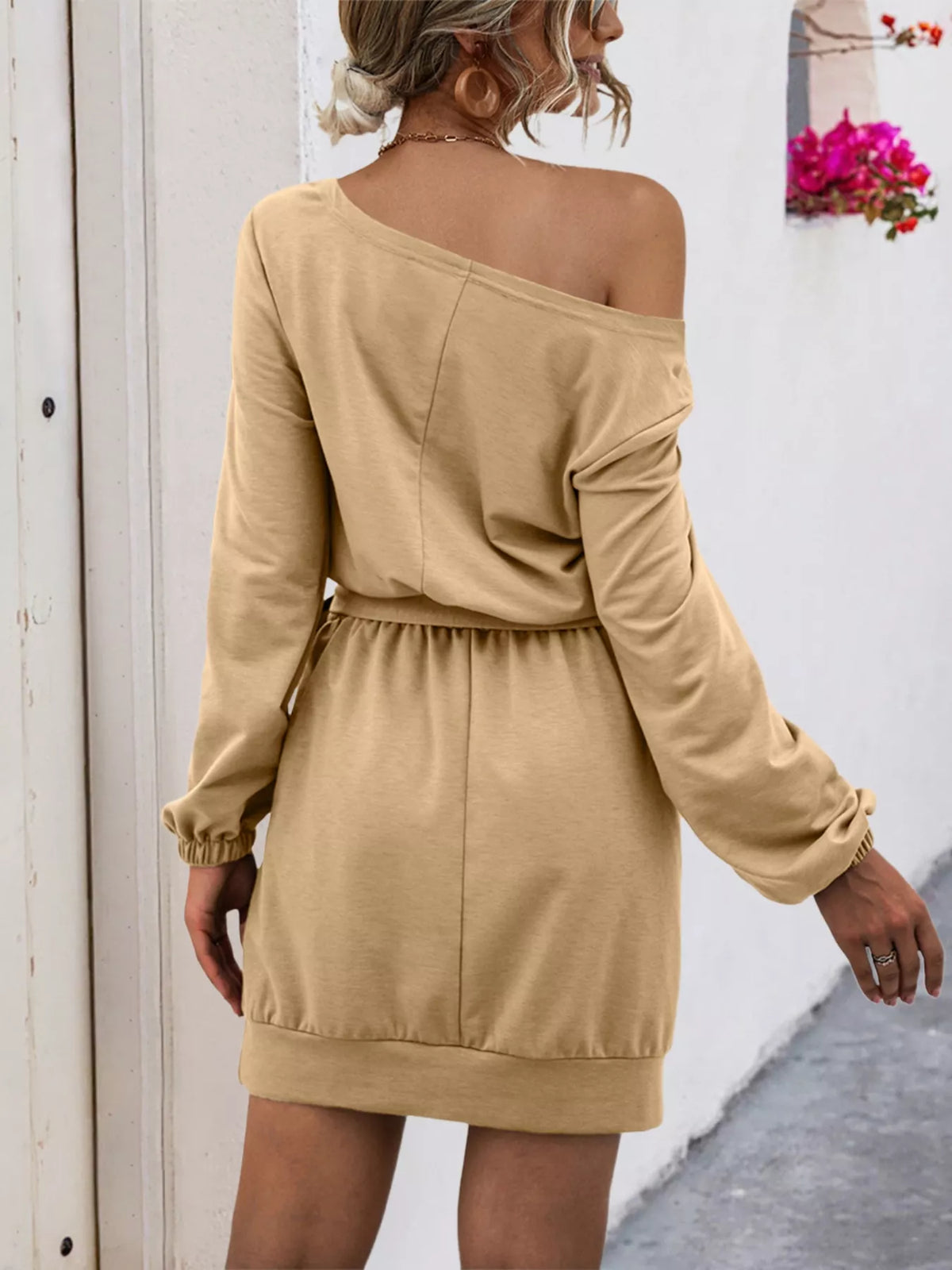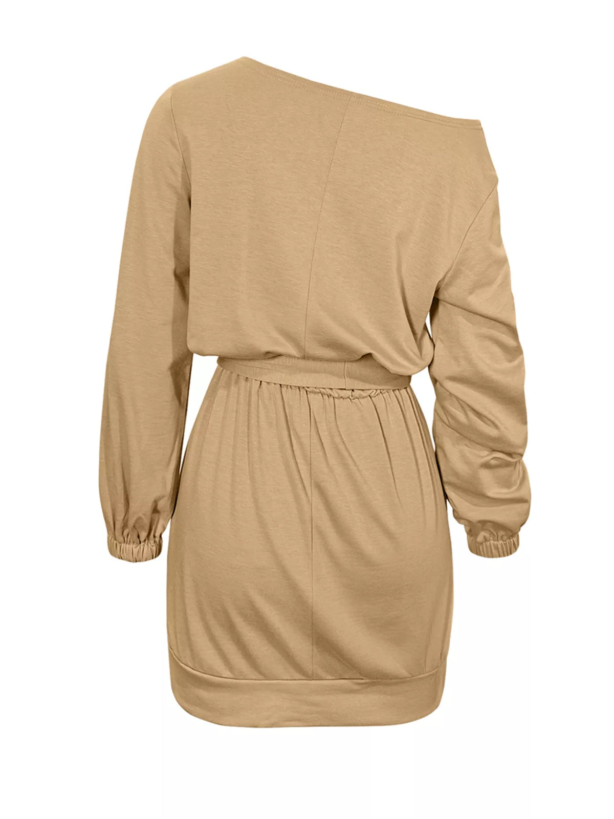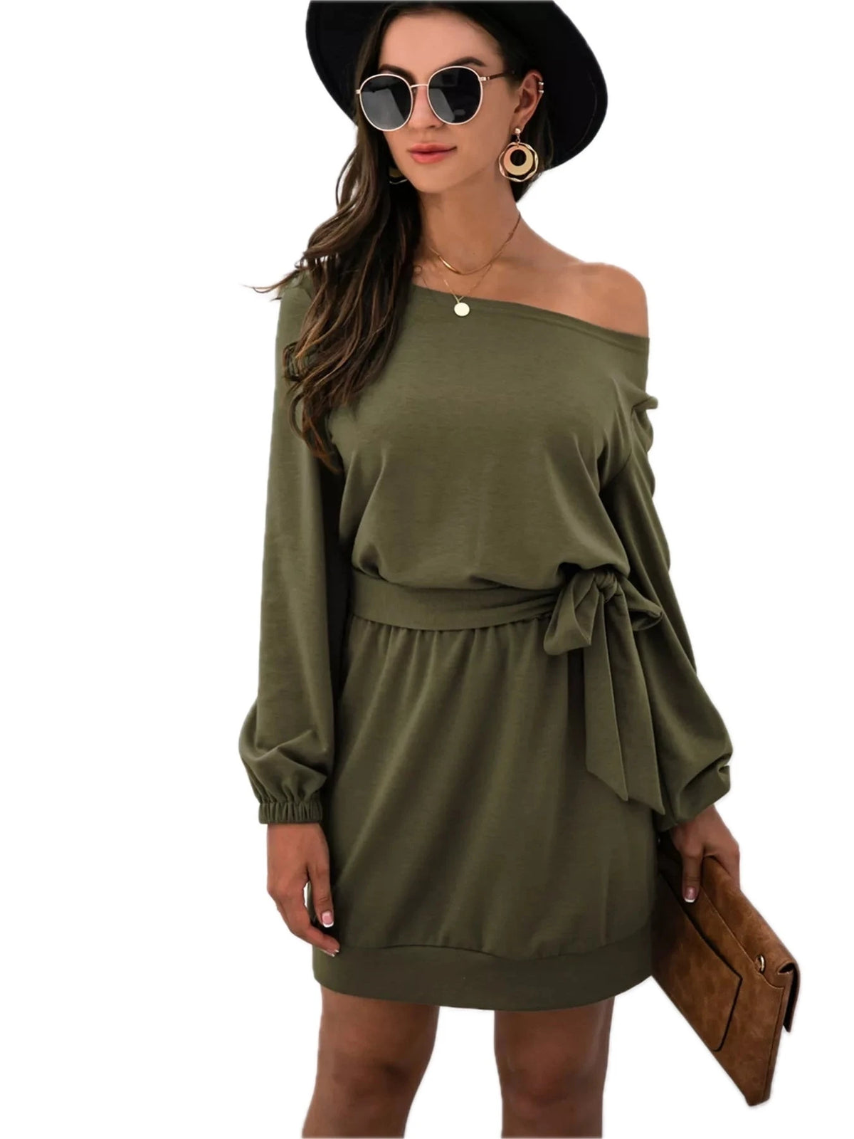 Women's One Shoulder Tie Waist Dress 95% polyester and 5% spandex fabric blend for a stylish silhouette for casual wear