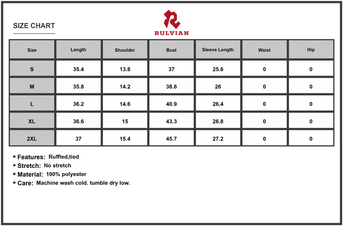 Size | Length | Shoulder | Bust | Sleeve Length | Waist | Hip |