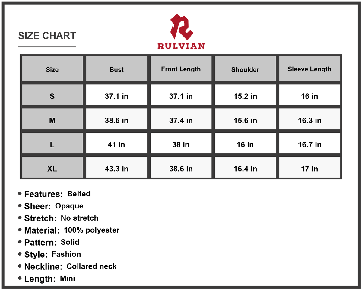 S:front length 37.1 in, shoulder 15.2 in, bust 37.1 in, sleeve length 16 in