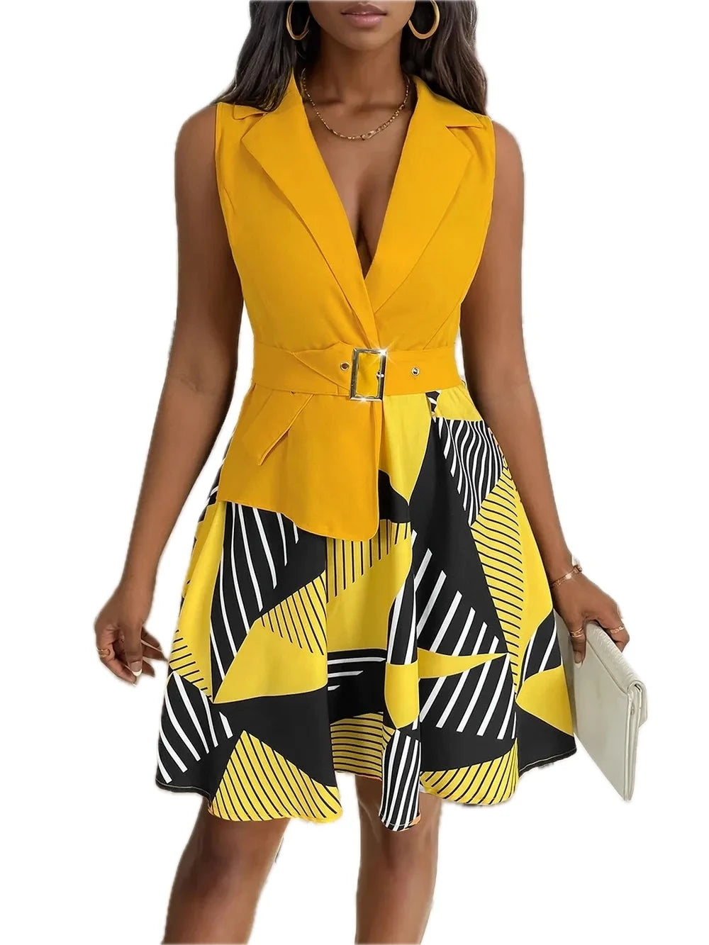 Womens Sleeveless Collared Neck Mini Dress 100% Polyester Lightweight Silhouette Perfect for Daywear and Evenings