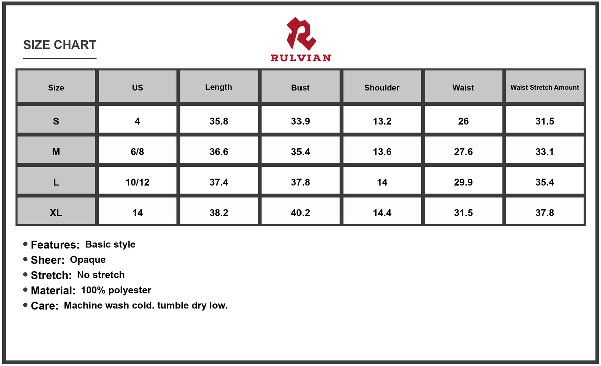 Size | US | Length | Bust | Shoulder | Waist | Waist Stretch Amount |