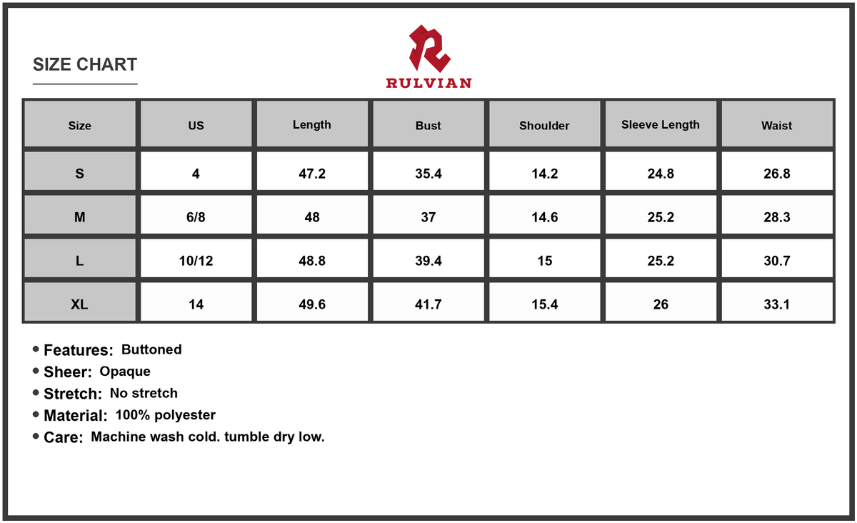 Size US Length Bust Shoulder Sleeve Length Waist
