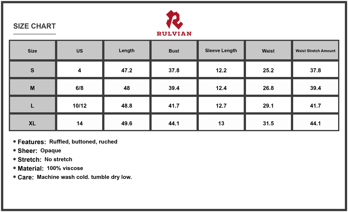 Size US Length Bust Sleeve Length Waist Waist Stretch Amount