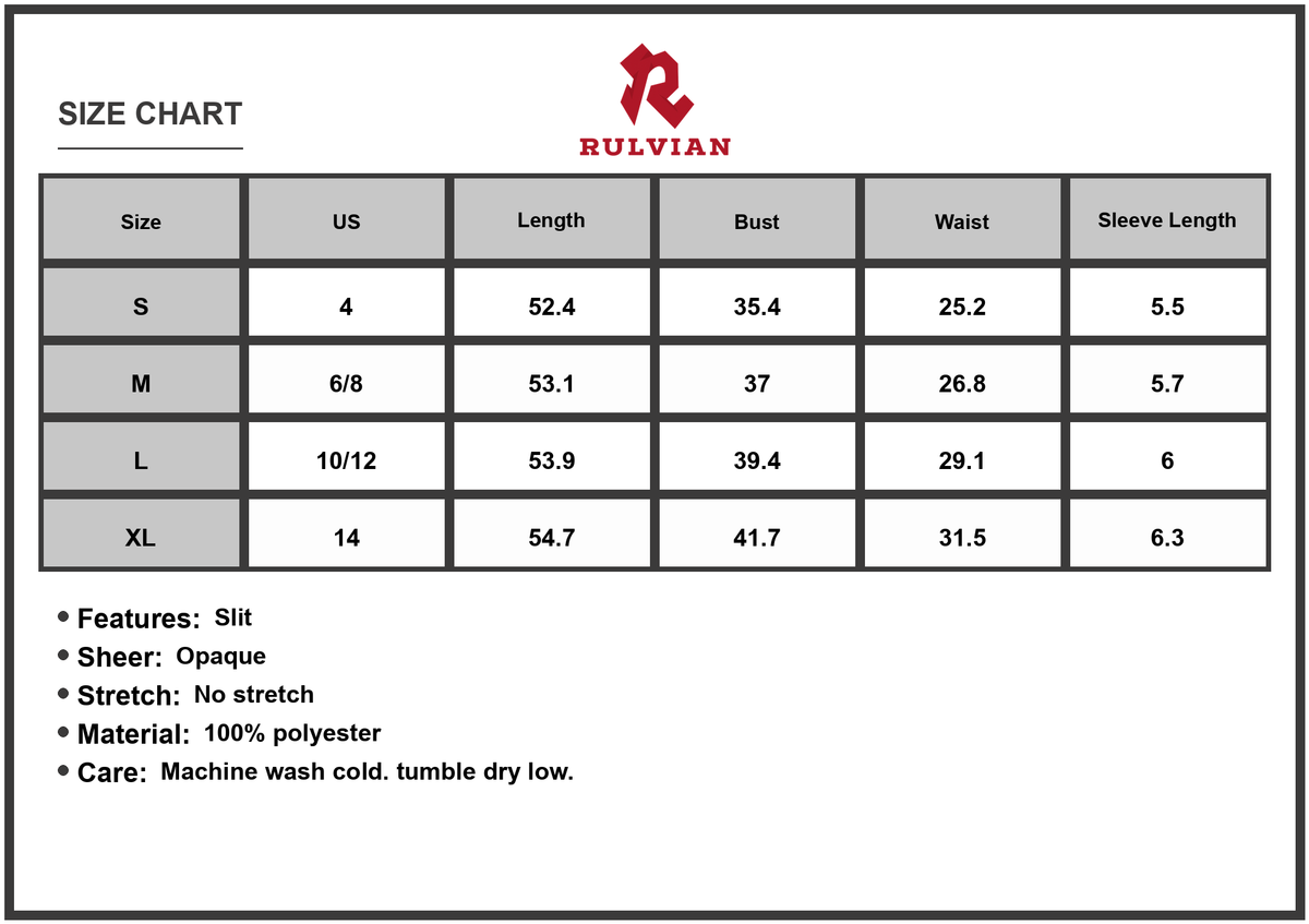 Size | US | Length | Bust | Waist | Sleeve Length |