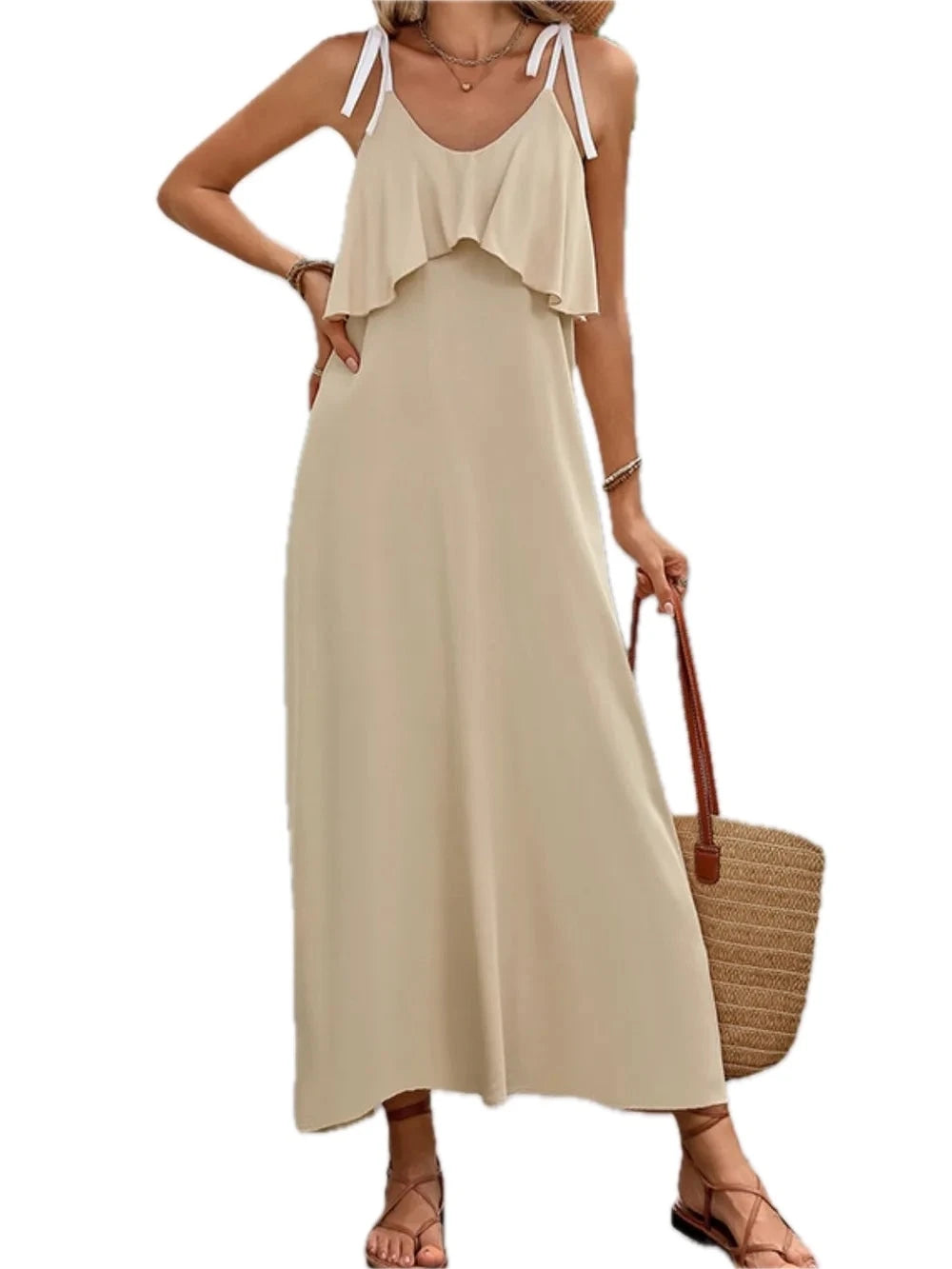 Womens Tied Ruffled Scoop Neck Sleeveless Dress 100% Viscose Lightweight Casual Date Night Ready Everyday Wear
