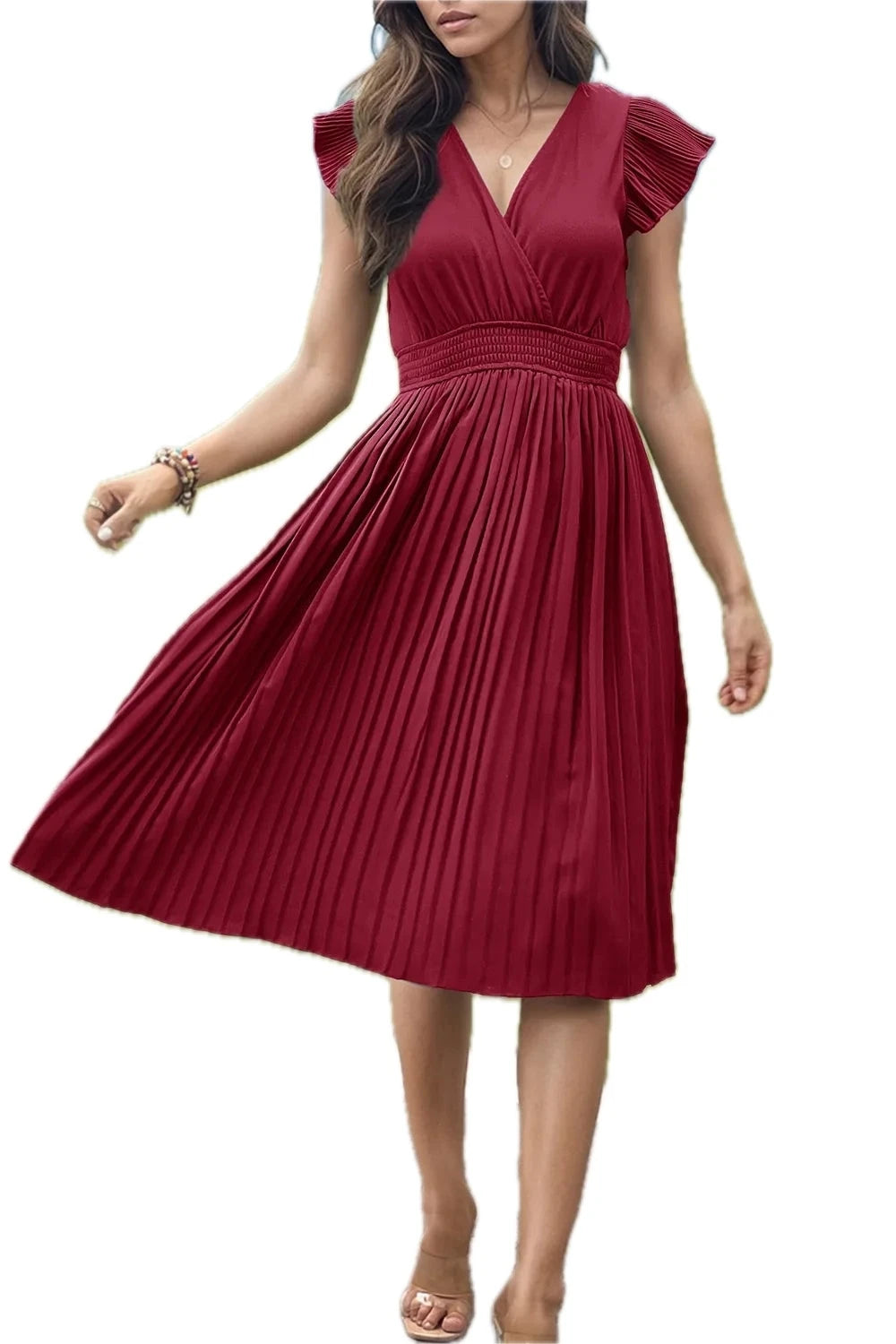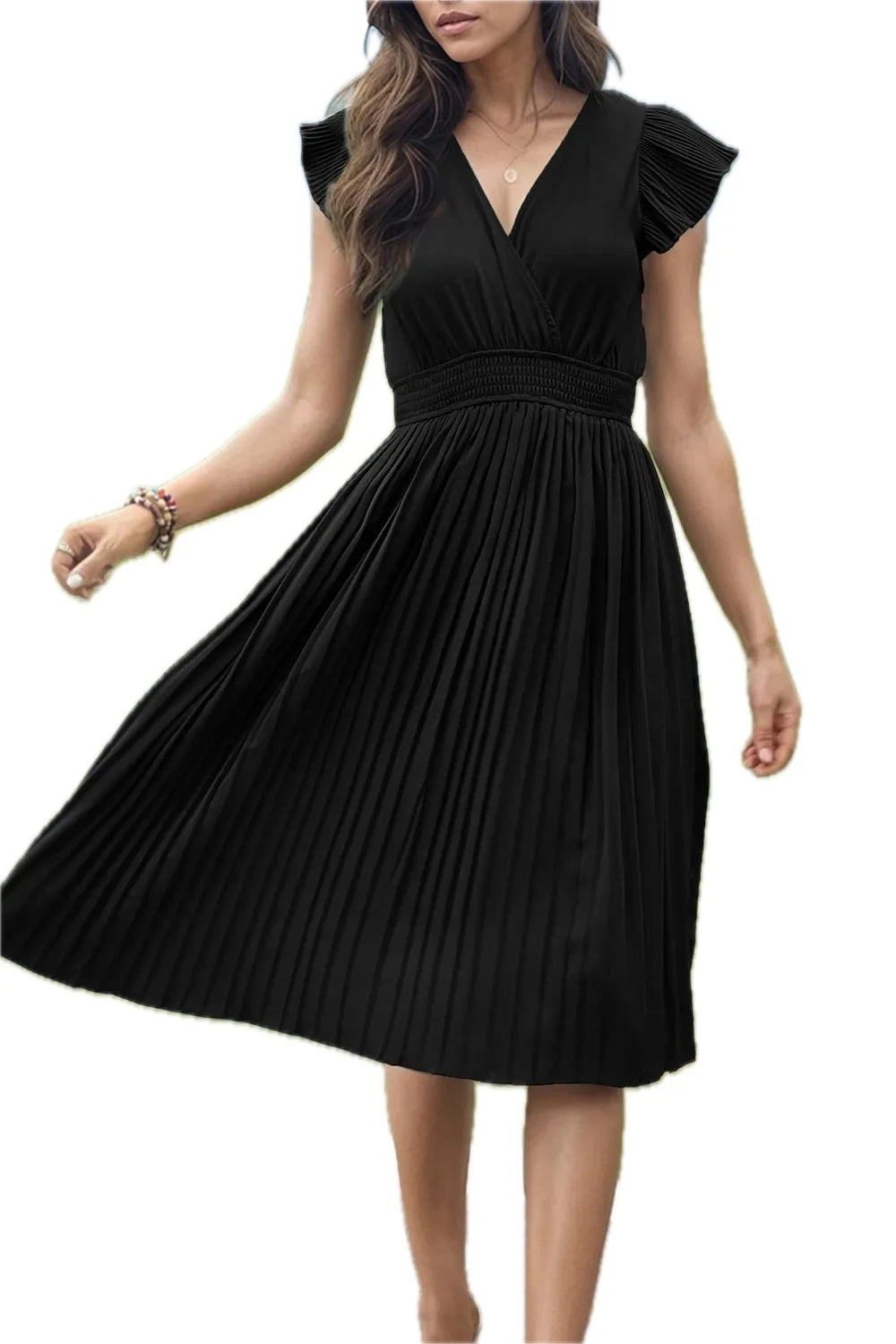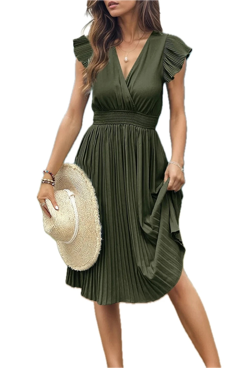 Women's Flutter Sleeve Tied Smocked Waist Dress 100% Polyester Lightweight Chic Everyday Wear Perfect for Summer