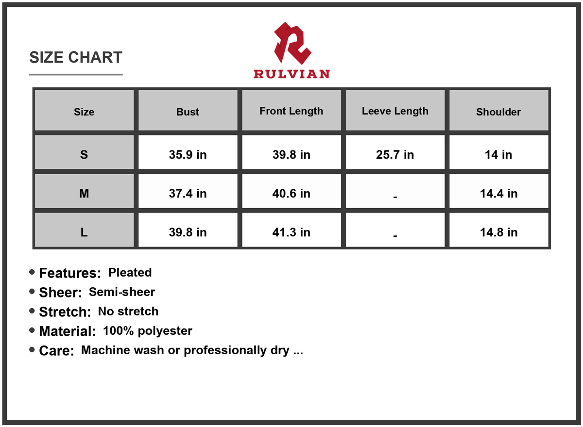 S: front length 39.8 in, shoulder 14 in, bust 35.9 in, waist 25.7-37.4 in, sleeve length 25 in