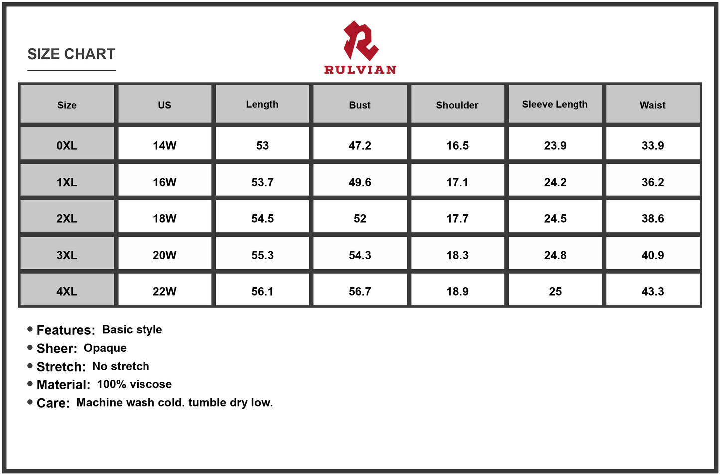 4XL | 22W | 56.1 | 56.7 | 18.9 | 25 | 43.3 |