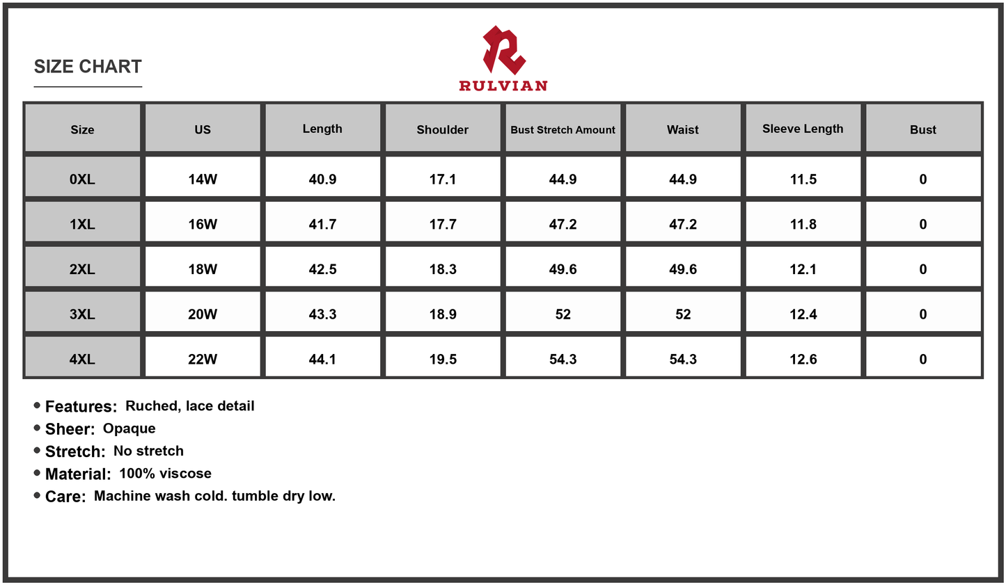 Size US Length Shoulder Bust Stretch Amount Waist Sleeve Length Bust
