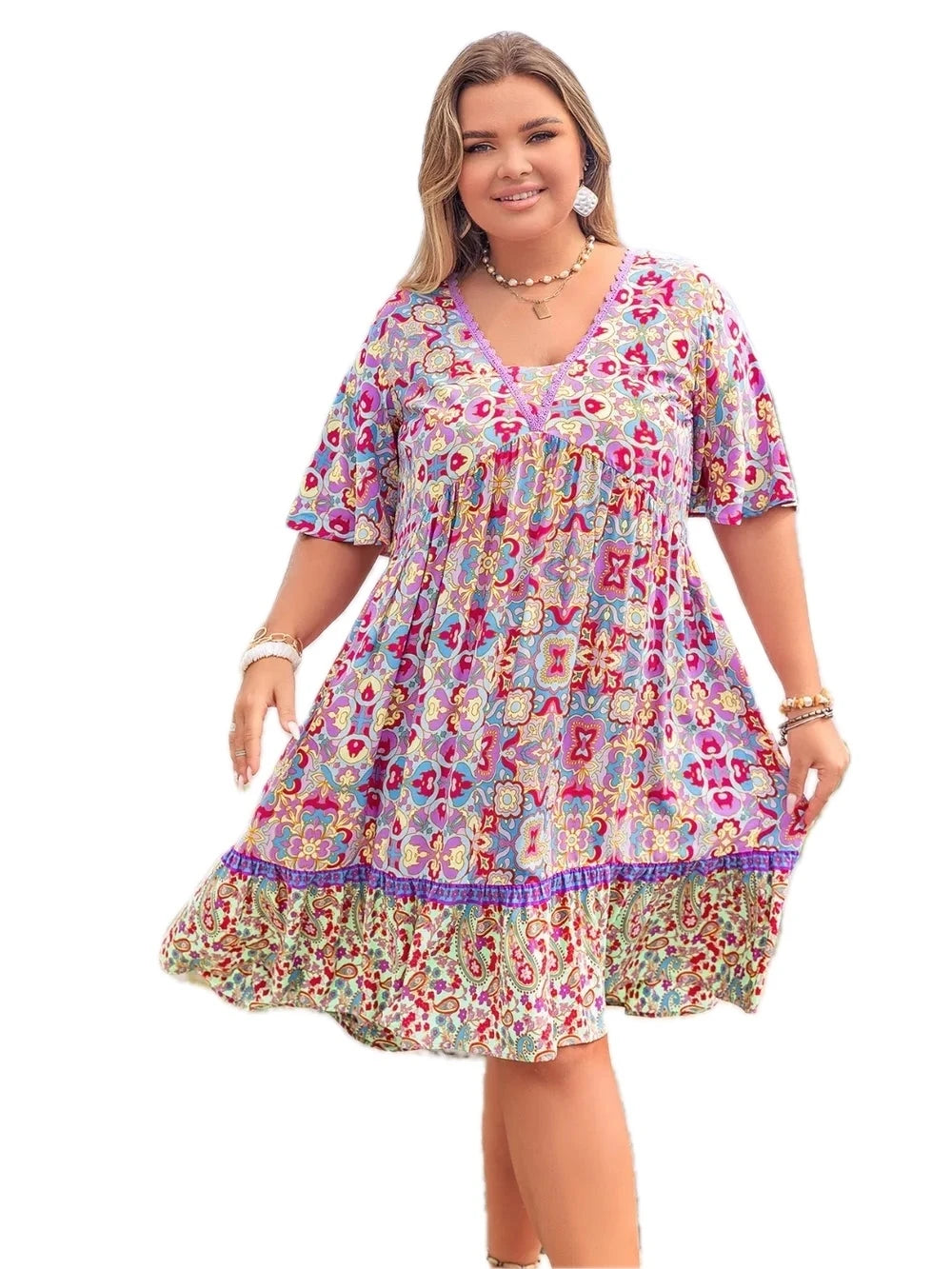 Men's Plus Size Lace Detail Printed Half Sleeve Dress Ruched Sheer Overlay One Hundred Percent Viscose Soft Finish