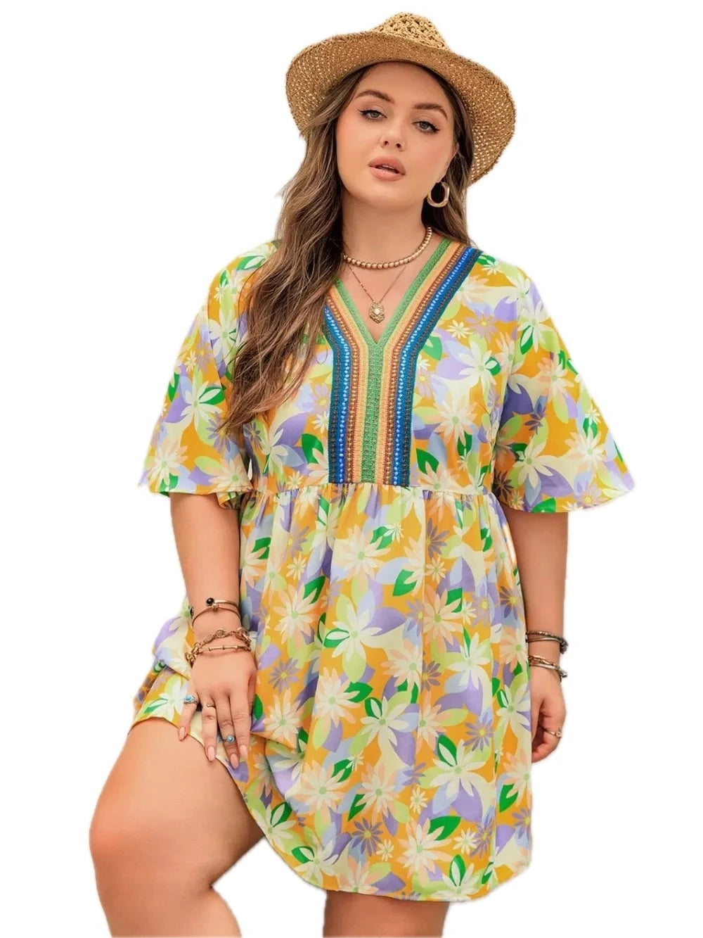 Men's Plus Size Printed V Neck Half Sleeve Mini Dress 100% Polyester Easy Care Lightweight Comfortable Everyday Wear