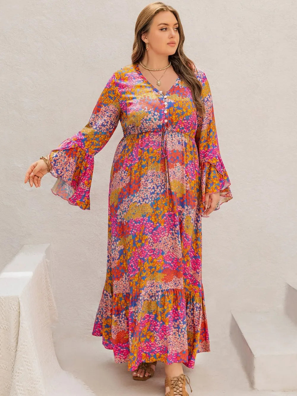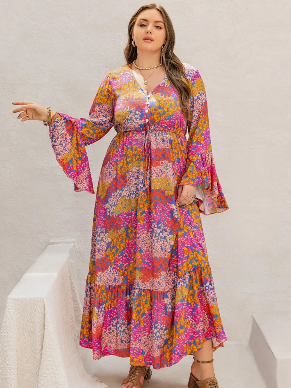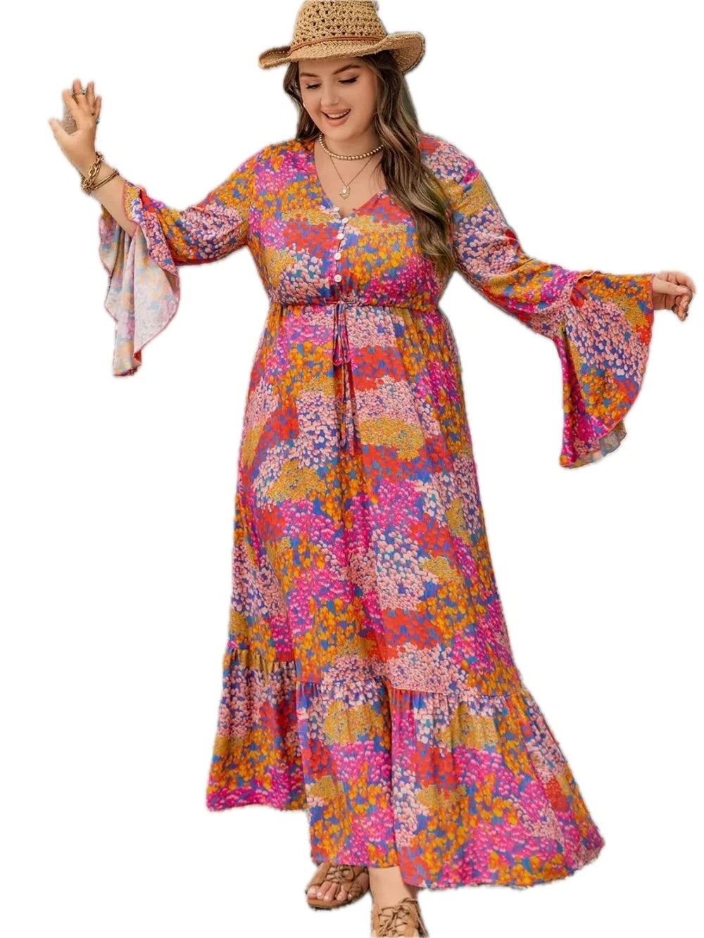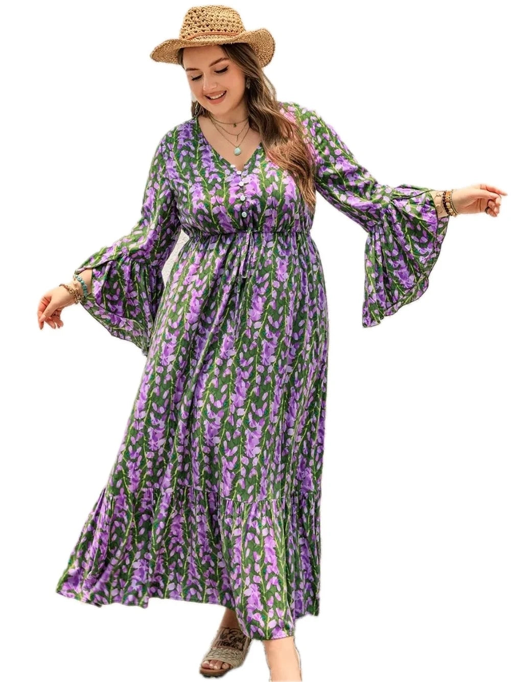 Women's Plus Size Printed V Neck Long Sleeve Maxi Dress viscose % fabric drapes softly and keeps you comfortable all day