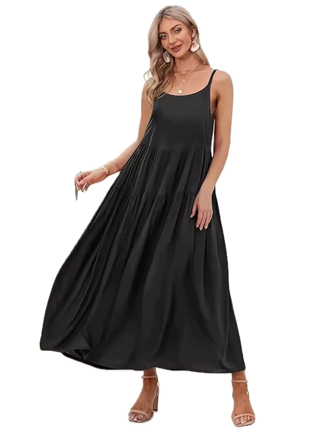Women's Plus Size Scoop Neck Sleeveless Midi Cami Dress with Stretch 95% Polyester 5% Spandex for Everyday Wear