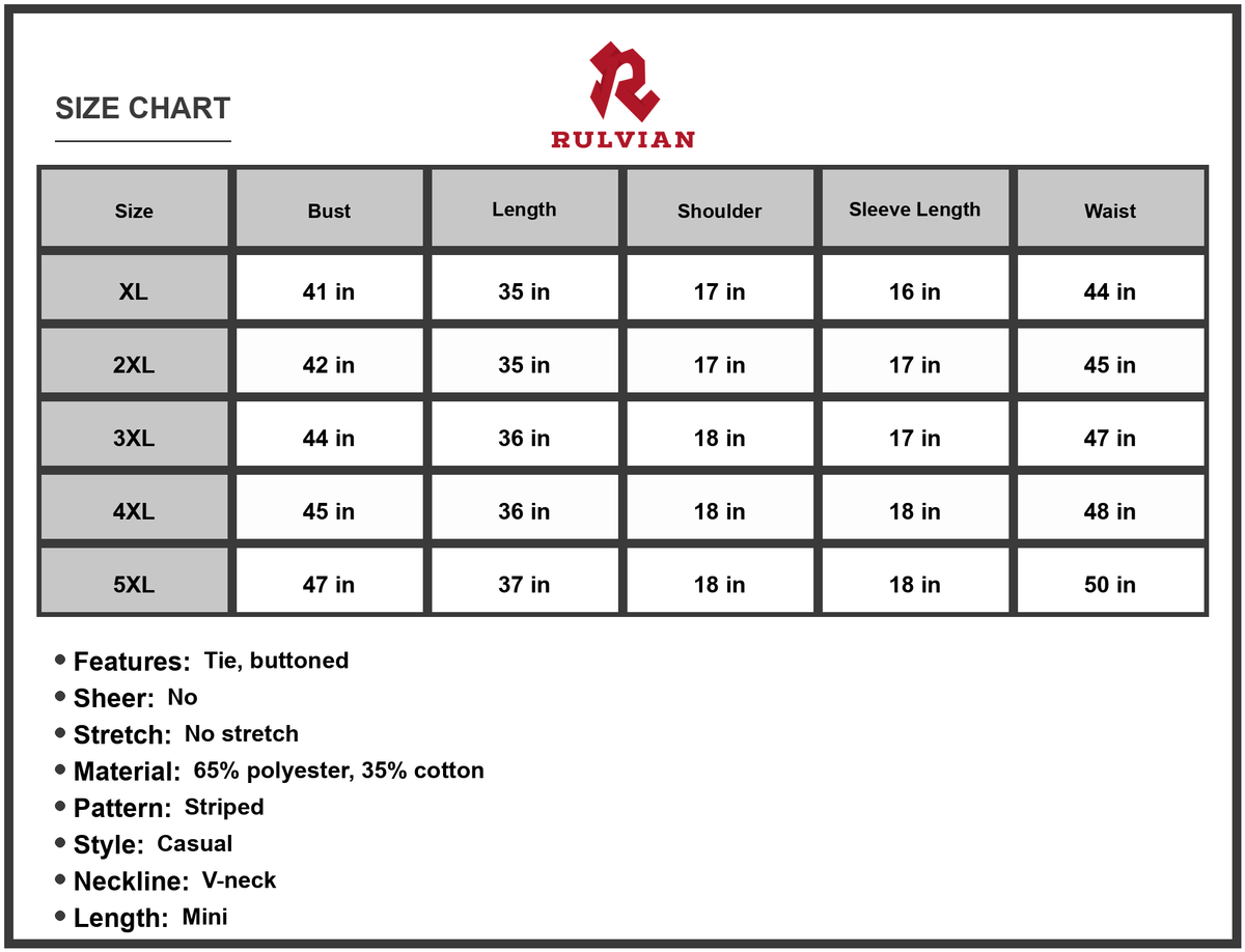 5XL: length 37 in, bust 47 in, waist 50 in, shoulder 18 in, sleeve length 18 in