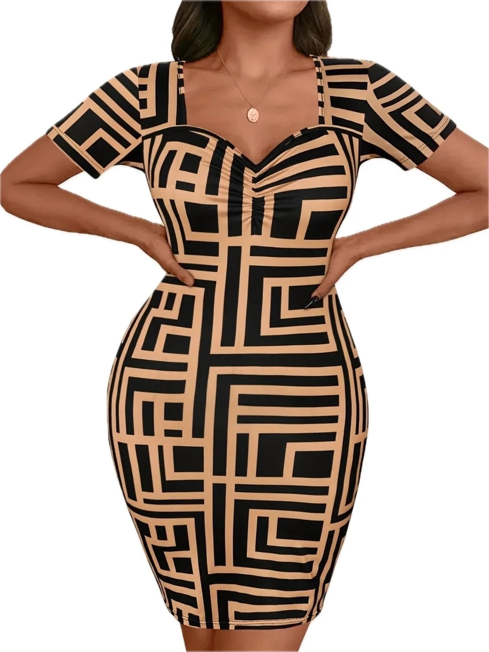 Women's Plus Size Sweetheart Neck Short Sleeve Mini Dress with Flattering Fit for Party or Everyday Wear Now Available
